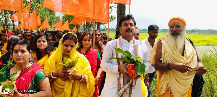 Motihari: कल्याणपुर. प्रखंड के राजपुर पंचायत के केसर कोल्ड स्टोरेज के प्रांगण से शुक्रवार को श्री श्री 1008 श्री शिव परिवार प्राण प्रतिष्ठा को लेकर 1101 कन्याओं ने कलश यात्रा निकाली. कलश यात्रा का नेतृत्व भाजपा लघु उद्योग के मयंकेश्वर सिंह के नेतृत्व निकाली गई. इस दौरान कन्याओं ने यह स्थल से सतर घाट से जल भरकर गाजे बाजे धोड़ा और वाहनों के काफिले के साथ पुनः यज्ञ स्थल पर पहुंची. भाजपा नेता श्री सिंह ने बताया की शुक्रवार को शिव परिवार प्राण प्रतिष्ठा यज्ञ का कलश यात्रा निकाली गई है. शनिवार को वेदी पुजन,अन्नाधिवास एवं पुष्पाधिवास व रविवार को शुभ प्राण प्रतिष्ठा किया जायेगा. मौके पर त्रिपुरारी शरण महाराज, आचार्य गौतम कृष्ण महाराज, आचार्य आनंद ओझा, मोहित पाण्डेय, अवधेश मिश्र व काशी के पधारे हुए वैदिक विद्वान गण आदि भक्तगण मौजूद थे.