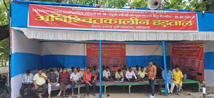 Motihari: मोतिहारी. पुरानी पेंशन लागू करने सहित अपनी दस सूत्री मांगों को ले जारी कर्मचारियों की हड़ताल गुरुवार को छठे दिन भी जारी रही. बिहार अनुसचिवीय कर्मचारी संघ (गोप गुट) के आह्वान पर कर्मचारी धरना पर डटे रहे और सरकार पर उनके भविष्य के साथ खिलवाड़ करने का आरोप लगाते रहे. हड़ताल के कारण प्रखंड,अंचल,अनुमंडल व समाहरणालय सहित सभी विभागों का कार्य प्रभावित रहा. एनएमओपीएस बिहार के संगठन सचिव ख्वाजा अतिदुर्रहमान ने कहा कि कर्मचारियों की सभी मांगे जायज है और जबतक ये मांगी पूरी नहीं होगी तबतक आंदोलन जारी रहेगा.इस दौरान व्यवहार न्यायलय के कर्मचारी संगठन के ओर से अपना नैतिक समर्थन दिया गया.जिलाध्यक्ष राजप्रकाश जी ने कहा कि अपने दायित्वों का बखूबी निर्वहन कर सरकार की योजनाओं को धरातल पर उतारने में अपनी महत्वपूर्ण भूमिका निभाने वाले कर्मचारियों की मांगे हर हाल में सरकार को माननी होगी. मौके पर एनएमओपीएस के जिलाध्यक्ष धर्मवीर चौधरी,शम्स तबरेज,दीपक कुमार,श्याम सुन्दर कुलर,विनय कुमार पाण्डेय, ओमप्रकाश कुमार अम्बेडकर, मंजूर आलम,अनिल प्रसाद, नरेन्द्र कुमार सिंह आदि ने अपने अपने विचार व्यक्त किये. मौके पर आदित्य कुमार,वीर भूषण कुमार,वैद्यनाथ राम,जितेन्द्र राम,मुकेश बैठा,विक्रान्त कौशिक,अंबर रेजा,रोहित कुमार,अभिषेक कुमार,संजय राय,त्रिभुवन प्रसाद,चितरंजन कुमार,आनंद कुमार, दिपक कुमार,सुबोध कुमार मिश्र,राजा शिवी कुमार,प्रभात कुमार, प्रमोद कुमार,नन्द किशोर सिंह, मनीष कुमार, मनोरंजन कुमार राजीव कुमार सिंह, नरेन्द्र कुमार सिंह व ब्बलू पासवान आदि कर्मचारी मौजूद थे.