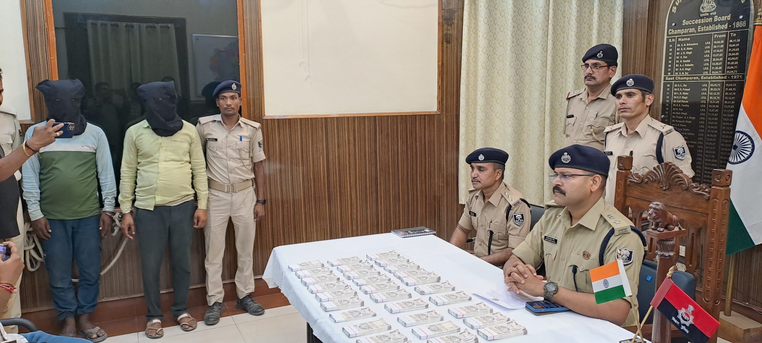मोतिहारी . कोटवा के राजापुर मठिया के पास से बाइक सवार दो युवक 12.90 लाख भारतीय जाली नोट के साथ पकड़े गये. पुलिस को सूचना मिली थी कि उत्तर प्रदेश से जाली नोट की बड़ी खेप लेकर दो तस्कर कोटवा आ रहे हैं. इसके बाद पुलिस ने एनएच 27 पर सादे लिबास में चौकस फिल्डिंग लगायी. इस दौरान राजापुर मठिया के पास बाइक सवार दोनों युवक दो पिठ्ठू बैग के साथ पकड़े गये. बैग की तलाशी ली गयी, तो जाली नोट बरामद हुई. एसपी कांतेश कुमार मिश्र ने शनिवार को पत्रकारों को बताया कि गिरफ्तार तस्करों में उत्तर प्रदेश के कुशीनगर कसया का मुकेश राजभर और संतकबीर जिले के बखिरा का जमील अख्तर शामिल है. दोनों ने पूछताछ के दौरान बताया कि कोटवा के ही एक व्यक्ति को जाली नोट की डिलीवरी देनी थी. उसको जाली नोट हैंडओवर करते, इससे पहले पुलिस के हत्थे चढ़ गये. उन्होंने बताया कि जाली नोट की डिलीवरी लेने वाले कोटवा के तस्कर की पहचान कर ली गयी है. उसकी गिरफ्तारी को लेकर छापेमारी की जा रही है. एसपी ने बताया कि जब्त सभी जाली नोट पांच-पांच सौ रुपये के हैं. दोनों तस्कर जाली नोट लेकर बाइक से उत्तर प्रदेश से मोतिहारी कोटवा पहुंचे थे. उनके इंटरनेशनल कनेक्शन की भी जांच-पड़ताल की जा रही है. पाकिस्तान या बांग्लादेश में बैठ जाली नोट तस्करों से इनका संबंध है या नहीं, इसकी छानबीन की जा रही है. लोकसभा चुनाव से पहले कोटवा में जाली नोट पहुंचाना कई सवालों को जन्म दे रहा है. चुनाव से पहले जाली नोट का पकड़ा जाना पुलिस के लिए बड़ी उपलब्धि है. छापेमारी में सदर-2 के डीएसपी जितेश कुमार पांडेय, कोटवा थानाध्यक्ष राजरूप राय, जिला आसूचना इकाई के अनुज पांडेय, अमित कुमार, मनीष कुमार, कोटवा थाने की महिला दारोगा दीप्ति कुमारी, सिपाही नित्यानंद दूबे, लव कुमार सहित अन्य शामिल थे. छापेमारी टीम में शामिल सभी पुलिस पदाधिकारी व जवानों को पुरस्कृत किया जायेगा.