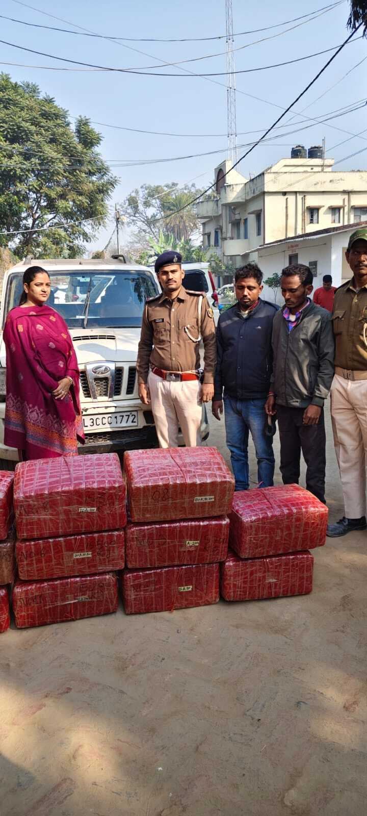 15 बंडल में रखा था करीब 169 किलोग्राम गांजा घोड़ासहन से गांजा लेकर जा रहे थे मुजफ्फरपुर चिरैया थाने के खोड़ा गांव के रहने वाले है दोनों मोतिहारी . जिले में नशा के कारोबार के खिलाफ चलाये जा रहे अभियान में पुलिस को शनिवार सुबह बड़ी उपलब्धि मिली है. छतौनी पुलिस ने मठिया मोड़ के पास से स्कार्पियो सवार दो तस्करों को भारी मात्रा में मादक पदार्थ के साथ गिरफ्तार कर लिया. तस्करों के पास से 15 बंडल में रखा करीब 169 किलोग्राम गांजा बरामद हुआ है. उसकी अंतरराष्ट्रीय बाजार में लगभग 90 लाख रूपये किमत बतायी जा रही है. सदर डीएसपी 1 दिलीप कुमार ने बताया कि गिरफ्तार तस्करों में चिरैया थाने के खोड़ा गांव का रमेश कुमार व रवि कुमार शामिल है. पूछताछ में दोनों बताया है कि उन्होंने गांजा को घोड़ासहन में लोड किया था. उसे लेकर दोनों मुजफ्फरपुर डिलीवरी देने जा रहे थे. पुलिस को इसकी गुप्त सूचना मिली. गुप्तचरों ने पुलिस को बताया कि स्कार्पियो नम्बर डीए3सीसीसी-1772 से गांजा लेकर दो तस्कर घाेड़ासहन से छतौनी होते हुए मुजफ्फरपुर की ओर जा रहे है. सूचना मिलते ही पुलिस ने एनएच 28 पर फिल्डिंग लगायी, जहां मठिया मोड़ के पास उक्त नम्बर की स्कार्पियो को रोका गया. उसकी तलाशी ली गयी तो 15 बंडल में रखा 169 किलोग्राम गांजा बरामद हुआ. प्राथमिकी दर्ज कर दोनों तस्करों को न्यायिक हिरासत में भेज दिया गया है. छापेमारी में सदर डीएसपी के साथ छतौनी के अपर थानाध्यक्ष रजनीश कुमार, जमादार सुमन कुमार सहित थाना के सशस्त्र बल शामिल थे.
