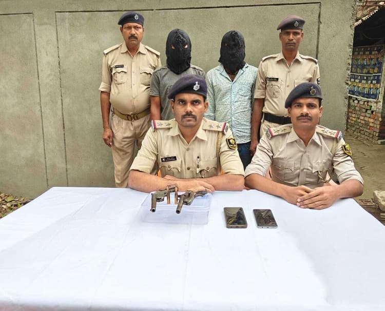 Motihari: मोतिहारी. कल्याणपुर के सिसवा खरार गांव से हथियार व कारतूस के साथ दो बदमाश पकड़े गये. सोशल मीडिया पर हथियार के साथ उनका फोटो वायरल हुआ था, जिसके बाद पुलिस ने प्राथमिकी दर्ज कर उनके नाम व पते का सत्यापन किया. उसके आधार पर रविवार रात छापेमारी कर दोनों बदमाशों हथियार के साथ गिरफ्तार कर लिया. एसपी स्वर्ण प्रभात ने बताया कि गिरफ्तार बदमाशों में सिसवा खरार का राकेश राम व नवल किशोर शामिल है. उनके पास से दो देसी पिस्टल, दो कारतूस व दो मोबाइल बरामद हुआ है. राकेश शराब तस्कर भी है. कल्याणपुर थाने में उसके विरुद्ध कांड संख्या 86-25(शराब तस्करी) का मामला दर्ज है. वहीं नवल किशोर का आपराधिक इतिहास खंगाला जा रहा है. उन्होंने बताया कि कुछ दिन पहले सोशल मीडिया पर एक युवक का हथियार के साथ फोटाे वायरल हुआ था. सत्यापन के दौरान पता चला कि हथियार के साथ जिस युवक की तस्वीर सोशल मीडिया पर वायरल हो रही है, वह कल्याणपुर के सिसवा खरार गांव का रहने वाला है, जो शराब तस्करी से भी जुड़ा है. नाम व पते के सत्यापन के बाद पुलिस ने सिसवा खरार में रविवार रात छापेमारी कर हथियार के साथ दोनों बदमाशों को गिरफ्तार कर लिया. आर्म्स एक्ट की प्राथमिकी दर्ज कर दोनों को न्यायिक हिरासत में भेज दिया गया है. छापेमारी में थानाध्यक्ष जितेंद्र कुमार के साथ थाना के अन्य पुलिस पदाधिकारी व जवान शामिल थे.