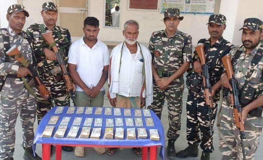 Motihari:घोड़ासहन. बिहार विधानसभा चुनाव को लेकर सीमावर्ती क्षेत्रों में सुरक्षा एजेंसियों के साथ एसएसबी के जवान भी कड़ी चौकसी के साथ मुस्तैदी से ड्यूटी निभा रहे हैं. इसी कड़ी में नेपाल से लाये जा रहे भारी मात्रा में नेपाली रुपयों के साथ दो नेपाली नागरिकों को एसएसबी द्वारा गिरफ्तार किया गया है. मिली जानकारी के अनुसार 71वीं बटालियन सशस्त्र सीमा बल (एसएसबी) अठमोहान कैम्प के जवानों ने सीमावर्ती गिरी घाट कैम्प के निकट छापेमारी कर नेपाल से लाये जा रहे नेपाली 677000 रुपए के साथ दो नेपाली नागरिको को गिरफ्तार कर लिया. पकड़े गए दोनो नेपाली नेपाली नागरिकों की पहचान नेपाल के बारा जिला अंतर्गत सिमरौन गढ़ थाना क्षेत्र के सातावही गांव निवासी मोनाफ़ मियां व साबिर हुसैन के रूप में की गई हैं. जानकारी देते कैम्प के प्रभारी इंस्पेक्टर नरेश लम्बा ने बताया कि सूचना मिली थी कि नेपाल से भारी मात्रा में नेपाली रुपयों के साथ तस्कर भारतीय सीमा में प्रवेश करने वाले हैं. जिसके बाद एसएसबी के जवानों द्वारा सीमा पर चौकसी बढ़ाने के साथ गहन गश्ती अभियान चलाया गया. इस दौरान नेपाली नागरिकों को रोककर तलाशी ली गई. जिसके बाद दोनों के पास से उक्त नेपाली रुपये बरामद कर ली गई. जब्त नेपाली रुपयों में 322 पीस 1000 के नोट और 710 पीस 500 के नोट शामिल है. बरामद नेपाली रुपयों के साथ पकड़े गए उक्त दोनों नेपाली नागरिकों को पूछताछ के बाद आगे की कार्रवाई के लिए झरौखर पुलिस को सौंप दिया गया है. छापेमारी टीम में इंस्पेक्टर नरेश लम्बा के साथ मुख्य आरक्षी फुलबाश व अन्य जवान मौजूद रहे.