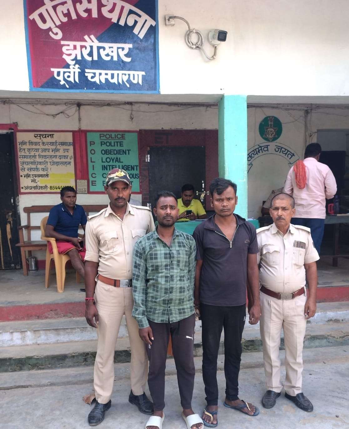 Motihari: घोड़ासहन. झरौखर पुलिस ने मंगलवार की रात वाहन जांच के दौरान एक चोरी की बाइक के साथ दो नेपाली बाइक चोरो को गिरफ्तार कर लिया. पकड़े गए दोनो नेपाली बाइक चोरो की पहचान नेपाल के रौतहट जिला अंतर्गत बंकूल थाना क्षेत्र के सरमुजवा गांव निवासी विजय दास व कृष्णा राम के रूप में की गई हैं. जानकारी देते थानाध्यक्ष असलम अंसारी ने बताया कि सीमावर्ती क्षेत्रों में वाहन जांच के दौरान उक्त चोरी की बाइक के साथ नेपाल की तरफ जा रहे दोनो युवको को रोका गया. पुलिस द्वारा जब वाहन का कागजात दिखाने को कहा गया तब कोई भी कागजात नहीं प्रस्तुत किया जा सका. जब बाइक का सत्यापन किया गया तब उक्त बाइक चोरी होने की बात सामने आयी, जिसके बाद बाइक को जब्त कर पूछताछ के बाद गिरफ्तार दोनों बाइक चोरों को न्यायिक हिरासत में भेज दिया गया.
