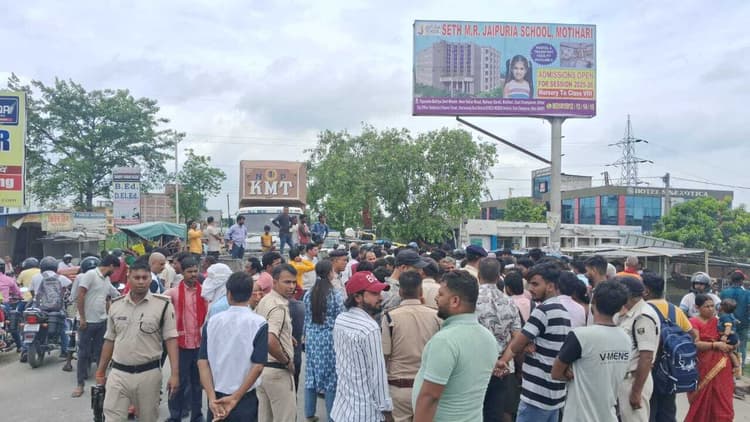 Motihari: मोतिहारी. मुफस्सिल थाना अंतर्गत डीएवी मोड़ के पास बुधवार को मुजफ्फरपुर की तरफ से आ रही बेकाबू वाहन ने एक महिला को कूचल दिया. उसकी मौत घटना स्थल पर हो गयी. मृतका नजरून नेशा (50) छौड़ादानो के पुरूषोत्तमपुर वार्ड सात के रहने वाले मो इरशाद की पत्नी थी. घटना शुक्रवार सुबह की बतायी जा रही है. सूचना मिलते ही मृतका के परिजन व रिश्तेदारों ने घटना स्थल पर पहुंच स्थानीय लोगों के साथ मिल एनएच 28 को जाम कर दिया. परिजनों की मांग थी कि ठोकर मारने वाले वाहन की जब्ती व चालक की गिरफ्तारी नहीं होगी, तबतक न तो शव का पोस्टमार्टम होगा, न ही जाम समाप्ता होगा. करीब तीन घंटे तक एनएच पर परिचालन ठप रहा. छोटी-बड़ी गाड़िया के साथ स्कूली बस भी जाम मे फंसी रही. तीन किलोमीटर तक लम्बा जाम लगा रहा. उमस भरी गर्मी व तेज धूप के बीच राहगीर व स्कूली बच्चे जाम में बिलबिलाते रहे. सदर 2 डीएसपी जितेश कुमार पाण्डेय, मुफस्सिल थानाध्यक्ष रविरंजन कुमार, अपर थानाध्यक्ष शशिभूषण सहित अन्य पुलिस पदाधिकारी दलबल के साथ घटना स्थल पर पहुंचे. मृतक के परिजनों को उचित कार्रवाई का भरोसा दिलाया, उसके बाद सड़क से जाम समाप्त हुआ. पुलिस ने शव को कब्जे में लेकर पोस्टमार्टम के बाद परिजनों को सौंप दिया. सदर 2 डीएसपी जितेश कुमार पाण्डेय ने बताया कि परिजनों ने आवेदन नहीं दिया है. आवेदन मिलने पर प्राथमिकी दर्ज की जायेगी. उन्होंने कहा कि ठोकर मारने वाले वाहन की पहचान की जा रही है. एनएच पर लगे सभी सीसीटीवी फुटेज को खंगालने का निर्देश दिया गया है. ससुराल से पत्नी का इलाज कराने शहर आ रहा था इरशाद छौड़ादानो पुरुषोत्तमपुर का रहने वाला मो इरशाद अपने ससुराल कोटवा से पत्नी को लेकर शहर आ रहा था. उसकी पत्नी नजरून नेशा की तबीयत खराब थी. इलाज कराने के लिए वह नजरून को बाइक से लेकर शहर आ रहा था. वह जैसे ही एनएच 28 पर चढा ही था कि पीछे से आ रही तेज रफ्तार अज्ञात वाहन ने बाइक में ठोकर मार दी. नजरून की मौत घटना स्थल पर हो गयी, जबकि इरशाद गंभीर रूप से घायल हो गया. घटना के बाद चालक गाड़ी लेकर फरार हो गया.