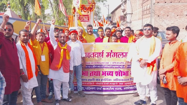 Motihari : मोतिहारी. विश्व हिन्दू परिषद व बजरंगदल ने पूर्व निर्धारित कार्यक्रम के अनुसार शनिवार को रामनवमी के अवसर पर हनुमान गढी हनुमान मंदिर से हाथी, घोडा, राम, लक्ष्मण, सीता, हनुमान, अश्व मेघ यज्ञ के घोडा विजय स्तंभ के साथ भव्य शोभा यात्रा निकाली गयी. शोभा यात्रा मे काफी संख्या मे महिलाएं भी शामिल थी. रास्ते भर लोगो ने शोभा यात्रा का फूल माला से स्वागत किया. यात्रा प्रशासन द्वारा निर्धारित रूट के अनुसार हनुमान गढ़ी से निकलकर हिन्दी बाजार पंचमनदिर ज्ञान बाबू चौक मेनरोड होते हुए मीनाबाजार नगर थाना चौक होते हुए पुनः धर्मसमाज होते हुए हनुमान मंदिर मे समापन हो गया, जंहा श्री राम खिंचाई का आयोजन किया गया. कार्यक्रम का नेतृत्व बजरंगदल के उद्धेश्य गुप्ता हेमनत कुमार जितेन्द्र कुशवाहा और राहुल सिंह कर रहे थे. वंही विहिप के तरफ से देवेन्द्र कुमार सिंह धर्मेन्द्र सर्राफ, संतोष श्रीवास्तव, संजय पटेल, राजीव रत्न अधिवक्ता कर रहे थे. दूर्गा वाहिनी का नेतृत्व प्रियंका नागवंशी कर रही थी. वहीं मौके पर उपस्थित विहिप के बिहार झारखंड के विधि प्रकोष्ठ प्रमुख अशोक श्रीवास्तव अधिवक्ता ने कहा कि राम ही इस देश राष्ट्र है और हम सभी को मर्यादा पुरुषोत्तम के आदर्शो का पालन करना चाहिए. उन्होने कहा कि हमे जात पात से उपर उठकर हमेशा राष्ट्र की अखण्डता एकता के लिए कार्य करना चाहिए. प्रियंका नागवंशी ने कहा कि हमे समय समय पर ऐसे अनुषठानो मे सनातनी होने का एकजुटता दिखाना चाहिए तथा महिलाए को भी राष्ट्रीय सुरक्षा के विषय पर सडको पर उतरना चाहिए. मौके पर भाजपा नेता सह उद्योगपति यमुना सीकरीया, बादल कुमार, जैकी गुप्ता, अंकित कुमार, अंकित श्रीवास्तव, अवनीश कुमार, महंथ बिगन दास, धुरूव मिश्रा, आनन्द प्रकाश, शेखर पांडेय, रतनेश सिंह, मनीष कुमार अधिवक्ता, धीरेन्द्र ठाकूर, गुडु सिंह आदि मौजूद रहे.