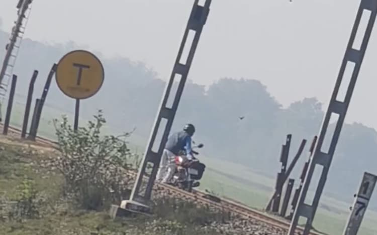 Train Video, सुजीत पाठक: मिथला एक्सप्रेस हावड़ा से रक्सौल जंक्शन आ रही थी. रक्सौल नहर पर रेलवे ढाला के बन्द होने के कारण एक बाइक सवार बगल से पटरी क्रॉस करने की कोशिश कर रहा था. लेकिन बाइक रेल पटरी के बीच फंस गई. बाइक सवार बाइक निकालने का बहुत प्रयास किया लेकिन असफल रहा. इसी दौरान बार बार हॉर्न बजाते हुए मिथिला एक्सप्रेस आ गई. तब बाइक सवार ने पटरी के बीच बाइक छोड़कर हट गया. ट्रेन ड्राइवर ने इमरजेंसी ब्रेक लगा कर ट्रेन तो रोकी लेकिन बाइक को कुछ दूर घसीट दिया. उसके बाद ड्राइवर ने ट्रेन से उतर कर बाइक हटवाया और आरपीएफ को सूचना देकर ट्रेन को रक्सौल जंक्शन के लिए प्रस्थान किया. देखें Video: