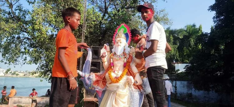 मोतिहारी.वास्तु शिल्पकार भगवान विश्वकर्मा की जयंती मंगलवार को जिलेभर में धूमधाम से मनायी गयी. कल-करखानों से लेकर मोटर गैरेज, विधुत उपकेंद्र, इंजीनियरिंग से जुड़े संस्थान सहित वाहन शो रूम में भगवान विश्वकर्मा के प्रतिमा व तस्वीर के समक्ष औजार रख विधि विधान से पुजा-अर्चना की गयी. इस अवसर पर लोगों ने हवन-पूजन कर सुख समृद्धि की कामना की. इस दौरान नगर निगम के कार्याशाला सह नगर भवन परिसर में भव्य विश्वकर्मा पुजा-अर्चना की गयी. शहर में स्वर्णकार संघ द्वारा सोनापट्टी, गुदरी बाजार स्थित द्वारदेवी मंदिर स्थान में भव्य विश्वकर्मा पूजा का आयोजन किया गया. संध्या में पूर्वी चंपारण स्वर्णकार संघ के बैनर तले गुदरी बाजार चौक पर भव्य जागरण एवं मनोरम झांकी की आयोजित की गयी. इस कार्यक्रम का शुरुआत संघ के संरक्षक मंडल के द्वारा दीप प्रज्वलित कर की गयी. मौके पर खेल, शिक्षा, नृत्य और गायन के क्षेत्र में जिला, स्टेट एवं नेशनल में अच्छा प्रदर्शन करने वाले 11 होनहार बच्चों को मोमेंटो एवं अंग वस्त्र भेट कर सम्मानित किया गया. कार्यक्रम का मंच संचालन महामंत्री सुधीर गुप्ता ने किया. वही कार्यक्रम में पूर्व मंत्री सह विधायक प्रमोद कुमार और नगर निगम उपमेयर डॉ. लालबाबू प्रसाद को भी अंग वस्त्र से सम्मानित किया गया. संघ के तरफ से संरक्षक मंडल में पूर्व अध्यक्ष लक्ष्मी प्रसाद, जितेंद्र कु. ज्वेलर्स, रामबाबू प्रसाद,चंद्रशेखर प्रसाद उर्फ तामन, दीपक कु. स्वर्णकार एवं संघ के अध्यक्ष धर्मेंद्र स्वर्णकार, उपाध्यक्ष दीपक सर्राफ,धीरज सर्राफ, सचिव राजेश कुमार,कोषाध्यक्ष संजय सर्राफ सह कोषाध्यक्ष निलेश रंजन, सह सचिव राजीव कुमार,अर्जुन कुमार उर्फ़ मन्नू संगठन मंत्री रंजन कुमार,सूरज सर्राफ शामिल रहे. केसरिया. स्थानीय पावर स्टेशन परिसर में विश्वकर्मा जयंती धूमधाम से मनाई गयी. जेई पवन कुमार प्रसाद द्वारा भगवान विश्वकर्मा की पूजा अर्चना की गई व पावर स्टेशन की मशीनों, कलपूजों और औजारों की पूजा की गई. इस मौके पर अधिकारियों, कर्मचारियों, कामगारों ने विद्युत उत्पादन लक्ष्य पूरा होने के साथ ही क्षेत्र की सुख-समृद्धि और संपन्नता की कामना की.इसके अलावा पावर स्टेशन के औजारों और कलपुर्जों की पूजा की गई.मौके पर लेखापाल विजय कुमार झा,सतीश कुमार,प्रिति कुमारी,कुन्दन सिंह आलोक सिंह कृष्ण कुमार समेत कई लोग उपस्थित थे.वही प्रखण्ड क्षेत्र के प्रतिष्ठानों में विश्वकर्मा का आयोजन किया गया.