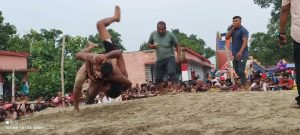 पहाड़पुर. प्रखंड के क़माल पिपरा गांव के उच्च विद्यालय परिसर में महावीरी झंडा के अवसर पर उक्त गांव के नवयुवक कमेटी कमाल पिपरा द्वारा शुक्रवार को कुश्ती प्रतियोगिता का आयोजन किया गया. दंगल प्रतियोगिता का कुशल संचालन अजीत कुमार तिवारी ने किया. कुश्ती प्रतियोगिता में यूपी के अयोध्या, गाजीपुर, बक्सर,राजस्थान, बीरगंज नेपाल, हनुमान गढ़ी बनारस लखनऊ समेत कई राज्यों से आए महिला पुरुष पहलवानों में जमकर कुश्ती का दांव पेंच दिखाए. वहीं महिला पहलवान में अंजू पहलवान और रिंकू पहलवान शामिल थी, जिन्होंने भी कुश्ती के दौरान दांव-पेंच दिखाए. कुश्ती प्रतियोगिता में लगभग बीस जोड़ी से अधिक पहलवानों ने भाग लिया. मौके पर पंसस राजेश कुशवाहा, लगनदेव साह, मथुरा प्रसाद, समीर राउत, राजू तिवारी, शंभू कुशवाहा, सुभाष कुशवाहा, प्रिंस कुमार, रंजीत साह, चुटकुन साह, चुन्नीलाल साह, रंजीत कुशवाहा, कुंदन श्रीवास्तव, अर्जुन कुमार आदि मौजूद थे.