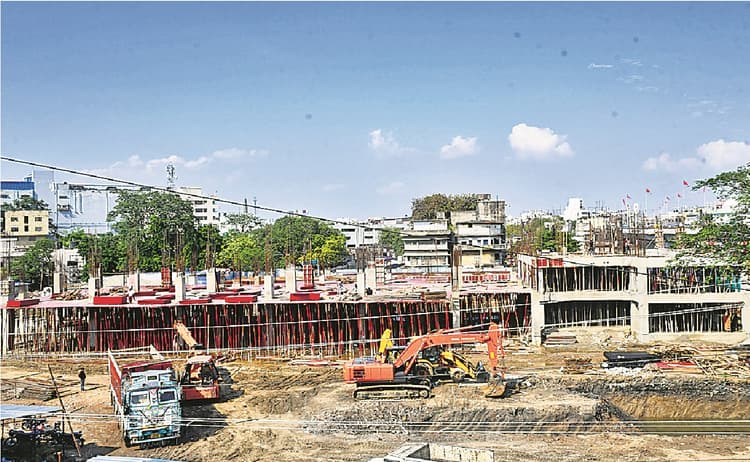 प्रमोद झा,पटना. जीपीओ के पास बन रहे मल्टी मॉडल ट्रांसपोर्ट हब के ग्राउंड फ्लोर की छत की ढलाई पूरी हो गयी है. अब ऊपरी मंजिल के निर्माण का काम हो रहा है. मल्टी मॉडल ट्रांसपोर्ट हब के निर्माण का लगभग 50 प्रतिशत काम पूरा हो गया है. ट्रांसपोर्ट हब दो मंजिल का बन रहा है. ग्राउंड फ्लोर में लोकल बसों की पार्किंग होने की वजह से 20 फुट की ऊंचाई पर छत ढालने का काम हुआ है.