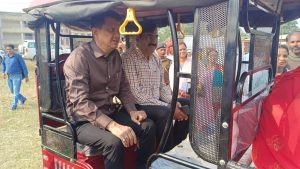 डीएम व डीडीसी ने की ई-रिक्शा की सवारी, महिला ने की ड्राइविंग