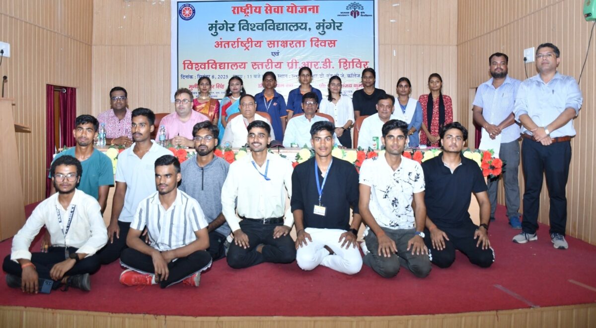 ———————–मुंगेर विश्वविद्यालय एनएसएस ईकाई द्वारा सोमवार को आरडी एंड डीजे कॉलेज सभागार में अंतर्राष्ट्रीय साक्षरता दिवस एवं विश्वविद्यालय स्तरीय पूर्व गणतंत्र दिवस परेड शिविर 2025 का आयोजन किया गया. कार्यक्रम का संयोजन एवं संचालन विश्वविद्यालय के एनएसएस कॉडिनेटर मुनींद्र कुमार सिंह ने किया. मुख्य अतिथि के रूप में कुलपति प्रो संजय कुमार तथा विशिष्ट अतिथि के रूप में कुलसचिव डाॅ घनश्याम राय और आरडी एंड डीजे कॉलेज के प्रधानाचार्य प्रो बिजेंद्र कुमार थे.