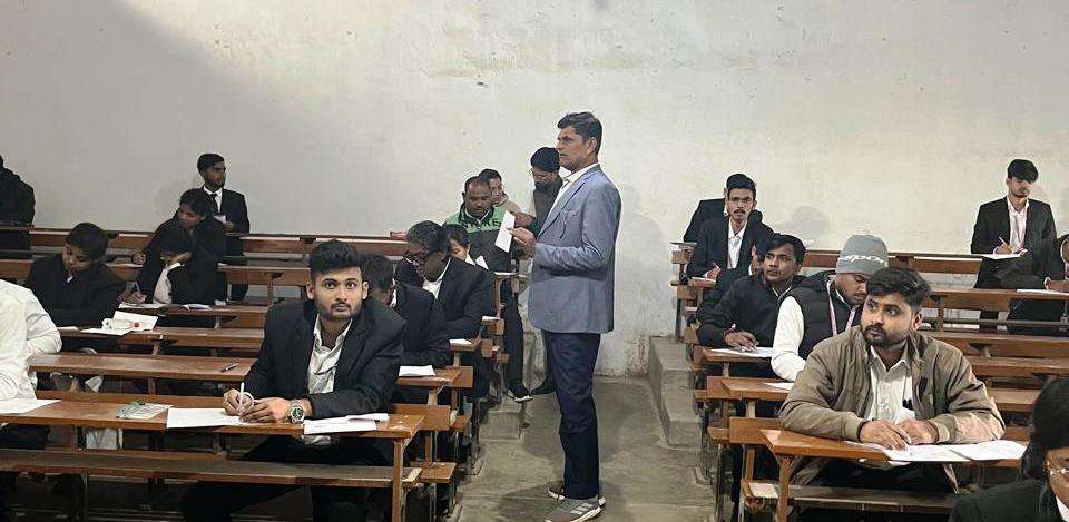 मुंगेर ———————— मुंगेर विश्वविद्यालय के एकमात्र विधि संस्थान विश्वनाथ सिंह लॉ कॉलेज के सत्र 2024-27 एलएलबी सेमेस्टर-2, सत्र 2023-26 एलएलबी सेमेस्टर-4 तथा सत्र 2022-25 एलएलबी सेमेस्टर-6 की परीक्षा आरडी एंड डीजे कॉलेज केंद्र पर आरंभ कर दी है. जिसके पहले दिन दो पालियों में एलएलबी सेमेस्टर-2 तथा सेमेस्टर-6 की परीक्षा ली गयी. जिसमें कुल 321 परीक्षार्थियों में 316 उपस्थित तथा 5 परीक्षार्थी अनुपस्थित रहे. वही परीक्षा के पहले दिन किसी भी परीक्षार्थी को कदाचार के आरोप में परीक्षा से निष्कासित नहीं किया गया. एलएलबी की परीक्षा के पहले दिन प्रथम पाली में एलएलबी सेमेस्टर-2 के भारतीय न्याय संहिता विषय की परीक्षा हुयी. जिसमें कुल 168 परीक्षार्थियों में 164 परीक्षार्थी उपस्थित हुये. जबकि 4 परीक्षार्थी अनुपस्थित रहे. वहीं दूसरी पाली में एलएलबी सेमेस्टर-6 के लॉ ऑफ टेक्सेशन विषय की परीक्षा ली गयी. जिसमें कुल 153 परीक्षार्थियों में 152 परीक्षार्थी उपस्थित तथा एक परीक्षार्थी अनुपस्थित रहा. इधर अब गुरुवार को दूसरे दिन की परीक्षा एक पाली में होगी. जिसमें एलएलबी सेमेस्टर-4 के भारतीय न्याय सुरक्षा संहिता विषय की परीक्षा ली जायेगी. इधर परीक्षा के पहले दिन केंद्राधीक्षक सह डीजे कॉलेज के प्राचार्य प्रो बिजेंद्र प्रसाद ने परीक्षा संचालन का निरीक्षण किया. इस दौरान कई परीक्षार्थियों के पास से पर्ची बरामद की गयी. जिसे लेकर केंद्राधीक्षक ने सख्त हिदायत देते हुए कहा कि इस तरह की शिकायत आने पर तत्काल कार्रवाई की जाएगी और परीक्षार्थी को परीक्षा से निलंबित किया जाएगा. परीक्षा पूर्ण रूप से कदाचारमुक्त संपन्न कराना सभी की जिम्मेदारी है. ऐसे में वीक्षण कार्य से जुड़े शिक्षक अपने कार्य को लेकर सजग रहेे.