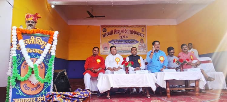 जमालपुर. सरस्वती शिशु मंदिर, सफियाबाद का वार्षिकोत्सव नौलक्खा दुर्गा स्थान परिसर में शनिवार को उल्लासपूर्ण माहौल में मनाया गया. कार्यक्रम का उद्घाटन मुंगेर के विधायक प्रणव कुमार यादव, भारतीय शिक्षा समिति के प्रदेश सचिव प्रदीप कुमार कुशवाहा, जिला निरीक्षक सतीश कुमार सिंह, सह विभाग संचालक अमन केसरी सहित अन्य ने मां सरस्वती एवं मां भारती के तेलचित्र पर दीप प्रज्वलित कर किया. संचालन कार्यक्रम प्रमुख प्रदीप कुमार शर्मा ने किया. कार्यक्रम के दौरान संस्कृति सभ्यता के विभिन्न रंगों का खूब प्रदर्शन हुआ और उपस्थित अतिथियों ने बड़े ही उत्साह के साथ आनंद लिया. इस बीच प्रदेश सचिव प्रदीप कुमार कुशवाहा ने बिहार दिवस की शुभकामना देते हुए शिक्षा के महत्व पर प्रकाश डाला. उन्होंने बच्चों में संस्कार का बीजारोपण क्यों आवश्यक है और इसका हमारी अगली पीढ़ी पर क्या प्रभाव पड़ेगा, इसे बेहतरीन ढंग से समझाया. कार्यक्रम में विद्यालय के लगभग 90 छात्र-छात्राओं ने भाग लिया. कार्यक्रम में गायन, वादन और एकांकी का विहंगम दृश्य दिखा. मौके पर भाजपा के पूर्व जिलाध्यक्ष डॉ अरुण पोद्दार, प्रधानाचार्य विमल कुमार सिंह, प्रबंधकारिणी समिति के अध्यक्ष रामानंद सिंह, सचिव कृष्ण प्रसाद, कोषाध्यक्ष मुरली यादव, शशिकांत, कन्हैया, मुकेश, अमित, पंकज, कीर्ति, पूनम सहित अन्य मौजूद थे. ——– बिहार दिवस पर बच्चों ने उकेरी रंगोली, निकाली प्रभातफेरी जमालपुर. बिहार दिवस के मौके पर शनिवार को एनसी घोष बालिका प्लस टू विद्यालय की छात्राओं ने प्रभात फेरी निकाली तथा छात्राओं के बीच रंगोली प्रतियोगिता का आयोजन किया गया. नेतृत्व विद्यालय की प्राचार्य वीणा कुमारी ने किया. प्रभात फेरी विद्यालय परिसर से निकलकर बड़ी दरियापुर मोहल्ले, मुख्य सड़क जमालपुर-मुंगेर रोड पर भ्रमण करते हुए वापस विद्यालय परिसर लौटी. इस दौरान छात्राओं ने बिहार दिवस से जुड़े नारे भी लगाई. इसके बाद छात्रों के बीच निबंध प्रतियोगिता और रंगोली बनाओ प्रतियोगिता का आयोजन किया गया. कार्यक्रम को सफल बनाने में विमल विभूति भास्कर, संजय चौरसिया, गोपाल कुमार, ज्योत्सना कुमारी, गूंजीता भारती, प्रतिमा कुमारी के अतिरिक्त विद्यालय के शिक्षक-शिक्षिकाएं शामिल थी.
