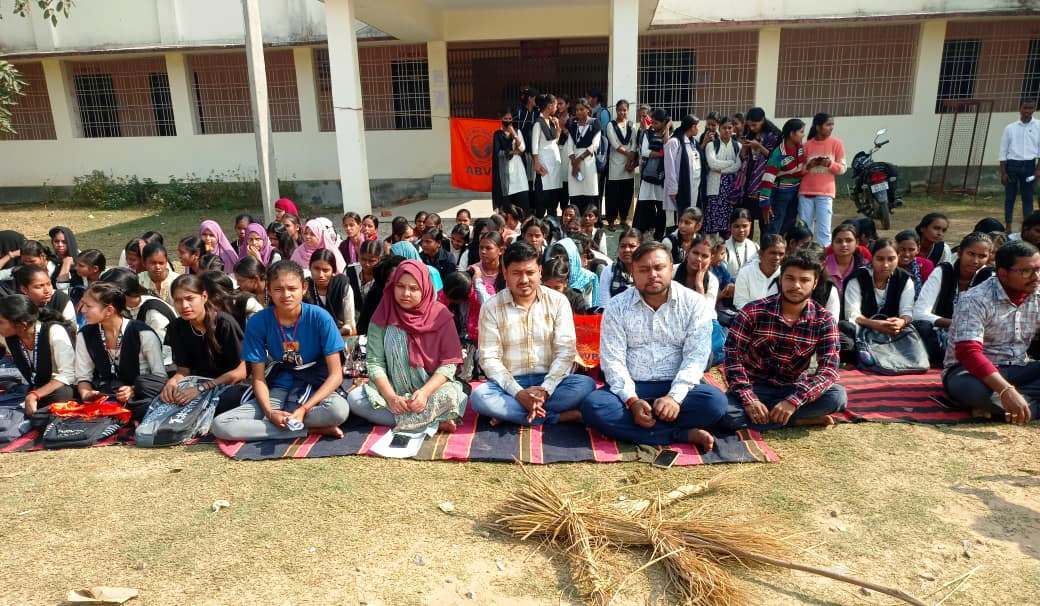 हवेली खड़गपुर. त्रुटिपूर्ण परीक्षा परिणाम में सुधार नहीं करने एवं परीक्षा फॉर्म शुल्क में अप्रत्याशित वृद्धि किये जाने के विरोध में अखिल भारतीय विद्यार्थी परिषद की नगर इकाई ने शनिवार को हरि सिंह महाविद्यालय, खड़गपुर में तालाबंदी करते हुए विरोध प्रदर्शन किया. मौके पर विश्वविद्यालय के कुलपति का पुतला दहन भी किया गया. आंदोलन का नेतृत्व नगर मंत्री आर्यन केशरी एवं कॉलेज अध्यक्ष अर्पण कुमारी ने संयुक्त रूप से किया.नगर सह मंत्री मोहित कुमार एवं शैलब झा ने बताया कि सत्र 2023-27 के सेमेस्टर-1 की परीक्षा में सैकड़ों छात्र-छात्राओं को अनुपस्थित दर्शा दिया गया, जबकि सभी परीक्षा में उपस्थित थे. बीते दो वर्षों से छात्र-छात्राएं बार-बार आवेदन देकर परीक्षा परिणाम सुधार की मांग कर रहे हैं, लेकिन महाविद्यालय एवं विश्वविद्यालय प्रशासन अबतक कोई कदम नहीं उठायी है. जिला एसएफएस सह संयोजक नीतेश मिश्रा एवं पिंकेश कुमार ने कहा कि सत्र 2025-29 के परीक्षा फॉर्म का शुल्क, जो पूर्व में 600 रुपये था, उसे नए नोटिस के माध्यम से माइग्रेशन एवं प्रोविजनल शुल्क जोड़कर 1100 रुपये कर दिया गया है, जो विश्वविद्यालय प्रशासन की मनमानी को दर्शाता है. इसके विरोध में छात्र-छात्राओं ने करीब पांच घंटे तक महाविद्यालय में तालाबंदी कर धरने पर बैठे रहे. इस दौरान छात्र-छात्राओं ने कुलपति मुर्दाबाद, भारत माता की जय, वंदे मातरम्, छात्र शक्ति-राष्ट्र शक्ति के नारे लगाये. परिषद के नेताओं ने चेतावनी दी कि यदि शीघ्र छात्रों की मांगों पर सकारात्मक कार्रवाई नहीं की गयी, तो आंदोलन को तेज किया जायेगा. मौके पर जिला संयोजक अंकित जायसवाल, प्रांत सोशल मीडिया सह संयोजक सत्यम कुमार निराला, शुभम केशरी, पिंकेश यादव, सुभाष कुमार, शुभम भारद्वाज सहित अन्य मौजूद थे.