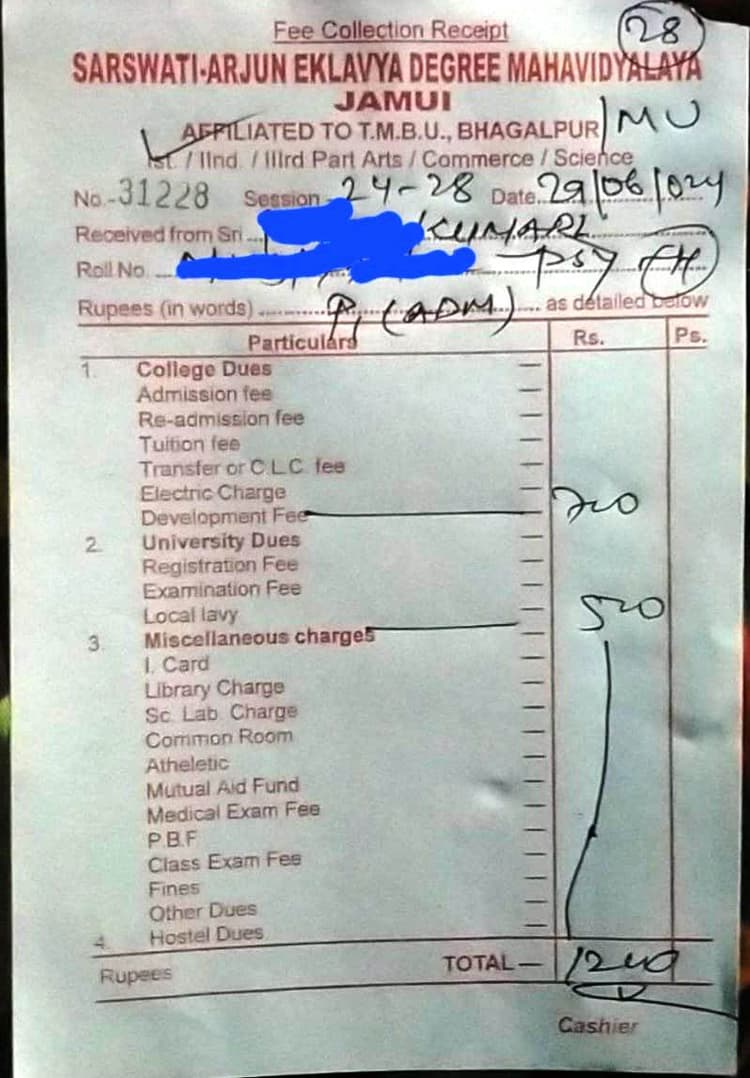 बीते दिनों भी कई कॉलेजों में सामने आये थे विद्यार्थियों से नियम के विपरीत राशि लिये जाने का मामला, प्रतिनिधि, मुंगेर. मुंगेर विश्वविद्यालय द्वारा अपने अंगीभूत एवं संबद्ध कॉलेजों में विद्यार्थियों से नामांकन व अन्य शैक्षणिक प्रक्रियाओं के दौरान नियम के विरुद्ध अतिरिक्त राशि लिये जाने के मामले में मौन रवैया अब विद्यार्थियों की परेशानी को बढ़ाने लगा है. हाल यह है कि विश्वविद्यालय प्रशासन के मौन रवैये के कारण एमयू के कॉलेजों में सरकार के आदेश के विपरीत छात्राओं से भी राशि लिये जाने का मामला सामने आया है. बता दें कि एमयू द्वारा वर्तमान में कई सत्रों के लिये शैक्षणिक प्रक्रिया पूर्ण की गयी है, जबकि सत्र 2024-28 स्नातक सेमेस्टर-1 में नामांकन की प्रक्रिया पूर्ण की जा रही है. ऐसे में कुलाधिपति तथा सरकार द्वारा स्पष्ट निर्देश दिया गया है कि एससी-एसटी छात्र-छात्राओं तथा सभी वर्ग की छात्राओं से न तो नामांकन शुल्क लिया जाना है और न ही नामांकन के दौरान कॉलेजों द्वारा कोई अतिरिक्त शुल्क लिया जाना है. बावजूद एमयू के संबद्ध कॉलेज सरस्वती एकलव्य कॉलेज, जमुई में छात्राओं से नामांकन शुल्क के अतिरिक्त 1200 रुपये का शुल्क लिया जा रहा है. जिसमें कॉलेज द्वारा छात्राओं से डिर्पाटमेंट फीस के नाम पर 700 रुपये तथा मिसलेनियस शुल्क के रूप में 500 रुपये लिया जा रहा है. जबकि इससे पूर्व भी एमयू मुख्यालय सहित अन्य जिले के कई अंगीभूत एवं संबद्ध कॉलेजों में विद्यार्थियों से 700 से 1000 रुपये अतिरिक्त शुल्क लिये जाने का मामला सामने आया था. हद तो यह है कि राजभवन व सरकार के निर्देश को लेकर विश्वविद्यालय द्वारा पूर्व में ही अपने कॉलेजों को पत्र भेजकर इस संबद्ध में निर्देशित किया गया है, लेकिन इसके बावजूद एमयू के मौन रवैये के कारण विद्यार्थी कॉलेजों में आर्थिक दोहन का शिकार हो रहे हैं.