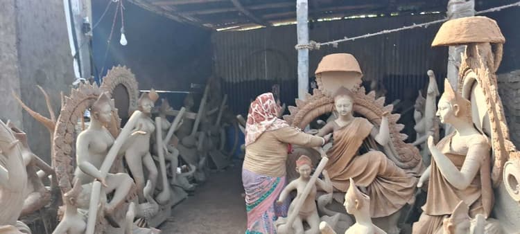 जमालपुर. इस वर्ष बसंत पंचमी और सरस्वती पूजा 23 जनवरी को मनाया जाएगा, जिसको लेकर मां शारदे की प्रतिमा बनाने वाले कलाकारों द्वारा प्रतिमा को अंतिम रूप दी जा रही है. सफियाबाद पावर सबस्टेशन के निकट बड़ी संख्या में प्रतिमाओं का निर्माण किया गया है. जहां घर के पुरुष के अलावा महिलाएं भी प्रतिमा निर्माण की कला में अपना हाथ आजमा रही है. इसी सिलसिले में बताया गया कि इस बार मां शारदे की प्रतिमा दो हजार से लेकर 15 हजार रुपए में उपलब्ध है. प्रतिमा कलाकार गणेश पंडित ने बताया कि प्रतिमा निर्माण में उनकी पत्नी सीता देवी और पुत्र राहुल कुमार भी सहयोग कर रहे हैं. उन्होंने बताया कि यह एक पारंपरिक व्यवसाय है, जो उन्हें उनके पूर्वजों द्वारा दिया गया है. इस बार उन्होंने लगभग पांच दर्जन प्रतिमाओं का निर्माण किया है. जिसमें से कुछ प्रतिमाओं का बयाना दिया जा चुका है तो कुछ प्रतिमा ऐसे ही तैयार किया जा रहा है, जिसे जरूरत के अनुसार बेचा जाएगा. उन्होंने बताया कि 22 जनवरी से ही लोग प्रतिमान ले जाना शुरू कर देंगे. मौसम को देखते हुए मिट्टी के काम को जल्द से जल्द वे लोग पूरा कर रहे हैं, जिसके बाद रंग रोगन का काम किया जाएगा.