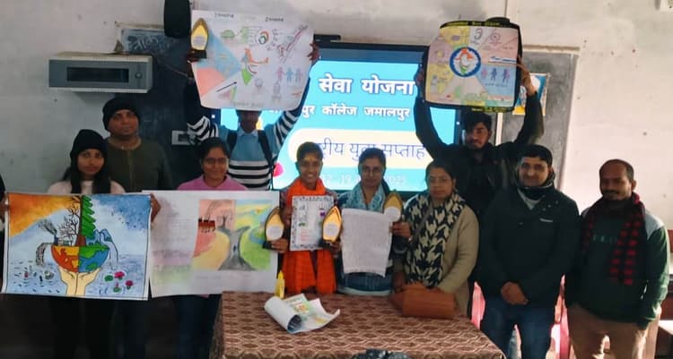 जमालपुर जमालपुर कॉलेज, जमालपुर एनएसएस ईकाई द्वारा 12 से 19 जनवरी के बीच युवा सप्ताह मनाया जा रहा है. जिसे लेकर बुधवार को महाविद्यालय स्तर पर निबंध और पोस्टर मेकिंग प्रतियोगिता का आयोजन किया गया. उद्घाटन प्रभारी प्राचार्य डॉ. अशोक कुमार पोद्दार ने किया. प्रभारी प्राचार्य ने कहा कि हमारे युवा देश के विकास के लिए, जो कुछ करना चाहते हैं या वे जिस तरह देश के विकास में अपनी भूमिका अदा करना चाहते हैं. उसकी वैचारिक रूपरेखा निबंध लेखन के जरिए ही सामने आ सकती है. एनएसएस पीओ डा. चंदन कुमार ने बताया कि जिसमें निबंध लेखन में मो. अजहर कासमी प्रथम स्थान, अनुष्का राज दूसरे तथा सृष्टि कुमारी तीसरे स्थान पर रही. जबकि पोस्टर मेकिंग प्रतियोगिता में राजकुमार चौधरी प्रथम स्थान, शिवम कुमार दूसरे तथा स्नेहा कुमारी और लूसी कुमारी संयुक्त रूप से तीसरे स्थान पर रही. वहीं 13 जनवरी के हुए भाषण प्रतियोगिता में राजा कुमार प्रथम, द्वितीय स्थान पर लूसी कुमारी एवं तीसरे स्थान पर स्नेहा कुमारी रहीं थी. पोस्टर मेकिंग प्रतियोगिता के निर्णायक मंडल में डॉ. चन्दा कुमारी, डॉ रिंकू रॉय और डॉ विनोद रंजन थे, निबंध प्रतियोगिता के निर्णायक मंडल में डॉ. ओम प्रकाश, डॉ. संजीव कुमार और डॉ अजय कुमार प्रभाकर थे. उन्होंने बताया कि प्रतियोगिता में दिव्या, संध्या, मिसी, प्रियांशु राज, सुष्मिता, विष्णु, अमन, अंशुल, रिया कुमारी, सीता, कोमल, कुणाल कुमार, अंकुश कुमार, आशीष कुमार, प्रीति कुमारी, अनुष्का राज, शेखर, अनुज आदि ने प्रतिभाग किया.