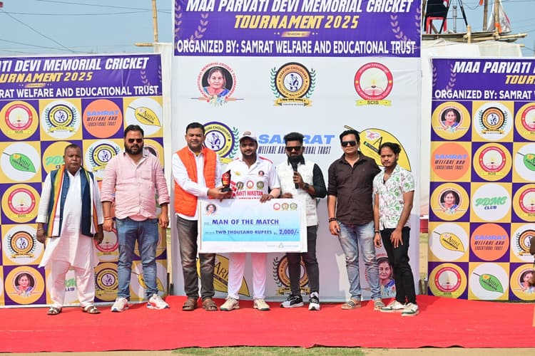 तारापुर. शकुनी चौधरी ग्रुप ऑफ इंस्टीट्यूशन पार्वती नगर के तत्वावधान में आयोजित राज्य स्तरीय मां पार्वती देवी मेमोरियल क्रिकेट टूर्नामेंट सीजन थ्री का दूसरा प्री क्वार्टर फाइनल मैच मंगलवार को खेला गया. जिसमें बेगूसराय ने जगदीशपुर को, तो औरंगाबाद ने भागलपुर की टीम को पराजित किया.