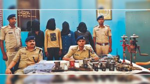 Munger News अवैध हथियार निर्माण के खिलाफ गुरुवार की अहले सुबह मुफस्सिल थाना क्षेत्र के टीकारापुर दियारा क्षेत्र में विशेष छापेमारी अभियान चलाया गया. पुलिस ने इस दौरान पांच मिनीगन फैक्ट्री का उद्भेदन किया और हथियार बनाते चार लोगों को गिरफ्तार किया. पुलिस ने छापेमारी में तीन अर्धनिर्मित पिस्टल, पांच कारतूस समेत भारी मात्रा में हथियार बनाने के उपकरण व पार्ट बरामद किया है.