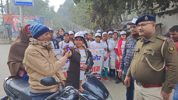 जागरूकता कार्यक्रम के तहत ट्रैफिक डीएसपी प्रभात रंजन ने जागरूकता रैली को हरी झंडी दिखाकर रवाना किया. रैली में नेहरू युवा केंद्र के युवा व ट्रैफिक थाना के पुलिसकर्मी ने भाग लिया. सभी अपने-अपने हाथों में सड़क सुरक्षा संबंधी स्लोगन लिखे बैनर थामे हुए थे. जागरूकता रैली शहर के विभिन्न मार्गों का भ्रमण किया. जहां भी बिना हेलमेट पहने बाइक चालक अथवा ट्रिपल लोड दिखे उसे रोक कर चॉकलेट देकर उससे ट्रैफिक नियम का शतप्रतिशत पालन करने का आग्रह किया.वाहन चलाते समय मोबाइल पर नहीं करूंगा बात का लिया शपथ