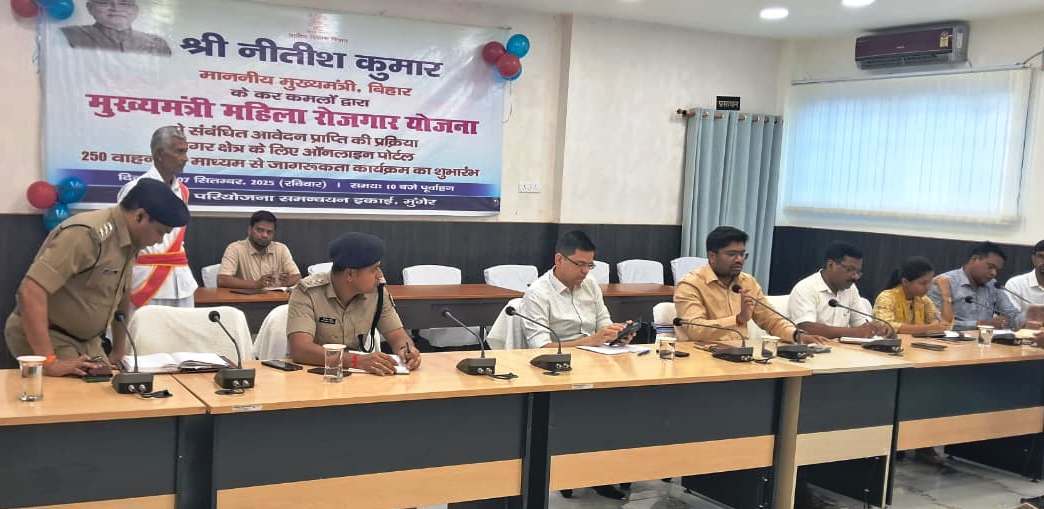मुंगेर. महिलाओं को आत्मनिर्भर बनाने व उनके रोजगार को बढ़ावा देने के लिए मुख्यमंत्री नीतीश कुमार ने रविवार को राज्य में वीडियो कॉन्फ्रेंसिंग के माध्यम से मुख्यमंत्री महिला रोजगार योजना का शुभारंभ किया. मुंगेर संग्रहालय सभागार में सीएम के उद्घाटन व संबोधन कार्यक्रम का लाइव प्रसारण किया गया, जिसे वहां मौजूद जीविका दीदियों ने देखा व सुना. कार्यक्रम की अध्यक्षता जिलाधिकारी निखिल धनराज निप्पाणीकर ने की.