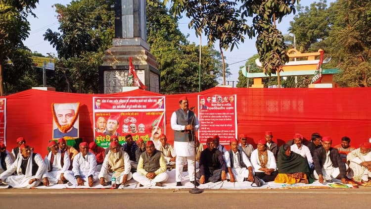 मुंगेर. किसानों की समस्या, जिले में जनकल्याणकारी योजनाओं में व्याप्त अराजकता, संसद में गृह मंत्री द्वारा बाबा साहब पर टिप्पणी सहित 13 सूत्री मांगों को लेकर किसान दिवस पर समाजवादी पार्टी ने शहीद स्मारक पर सोमवार को एक दिवसीय धरना दिया. इस दौरान सपाईयों ने केंद्र व राज्य सरकार के साथ जिला प्रशासन के विरुद्ध जमकर नारेबाजी की. धरना का नेतृत्व सपा जिलाध्यक्ष पप्पू यादव ने किया. इस दौरान सपाईयों ने किसानों के मसीहा चौधरी चरण सिंह के तस्वीर पर श्रद्धांजलि अर्पित कर जनहित में अनवरत लड़ाई लड़ने का संकल्प लिया. सपा जिलाध्यक्ष ने धरना को संबोधित करते हुए कहा कि पूंजीपतियों के गोद में बैठी सरकार के इशारे पर अधिकारियों के कोख से भ्रष्टाचार जन्म ले रहा है. किसान, मजदूर, छात्र, नौजवान का सुध लेने के लिए केंद्र और राज्य सरकार तैयार नहीं है. उन्होंने किसानों के सवालों पर कहा कि बोने के समय डीएपी नहीं, पटवन के समय बिजली नहीं, फसल बेचते समय एमएसपी नहीं यही आज किसानों की नियति बन गयी है. लोहिया वाहिनी के प्रदेश महासचिव रविकांत झा ने कहा कि आम जनता महंगाई, बेरोजगारी, भ्रष्टाचार, धर्म संप्रदाय के विध्वंसक चपेट में है. संसद कलंकित हो रहा है. संविधान निर्माता बाबा साहब को अपमानित किया जा रहा है. पीएम व सीएम यात्रा के बहाने जनता की गाढ़ी कमाई का दुरुपयोग कर रहे हैं. प्रधान महासचिव मनोज कुमार मधुकर ने कहा कि किसान मसीहा चौधरी चरण सिंह का सपना गांव गरीब की दशा सुधार का था, लेकिन दुर्भाग्य है अब किसी को किसान दिवस याद नहीं. धरनार्थियों ने बाद में राष्ट्रपति के नाम 13 सूत्री ज्ञापन डीएम को सौंपा. मौके पर मिथिलेश यादव, मो. आजम, अमर शक्ति, सुरेश यादव, डॉ सुधीर गुप्ता, रामनाथ राय, रंजन अराफ़ात, मनोज क्रांति आदि मौजूद थे.