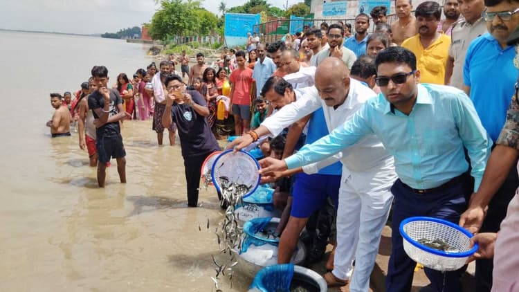 प्रतिनिधि, मुंगेर. गंगा नदी में विलुप्त हो रहे मत्स्य प्रजातियों के संरक्षण एवं संवर्धन को लेकर भारतीय कृषि अनुसंधान परिषद केंद्रीय अंतर्स्थलीय मात्स्यिकी अनुसंधान संस्थान (सिफरी) कोलकाता द्वारा रविवार को सोझी घाट पर राष्ट्रीय नदी रैंचिंग कार्यक्रम 2024 का आयोजन किया गया. जहां जिलाधिकारी अवनीश कुमार सिंह द्वारा गंगा नदी में 2.50 लाख मछली बीज को छोड़ा गया. सिफरी के निदेशक डॉ बिके दास के मार्गदर्शन में (कतला, रोहू तथा मृगल) मछलियों के बीज को गंगा नदी में रैंचिंग सह जन जागरूकता कार्यक्रम के तहत संचय किया गया. डीएम ने कहा कि इस वर्ष गंगा नदी में कम हो रहे महत्वपूर्ण मत्स्य प्रजातियों के 30 लाख से ज्यादा बीज का रैंचिंग किया गया है. ताकि गंगा में विलुप्त हो रहे मछलियों के प्रजातियों को बचाया जा सके. उन्होंने आमजन से गंगा की स्वच्छता के लिए भी लोगों को जागरूक होने की अपील की. जिला गंगा समिति के जिला परियोजना पदाधिकारी शालीग्राम प्रसाद ने गंगा को स्वच्छ रखने एवं जैव विविधता को बचाने के लिए लोगों से आह्वान किया. सिफरी के वैज्ञानिक डॉ गणेश चंद्र, सदस्य माला कुमारी, सूरज कुमार चौहान, प्रदत्त मालाकार ने जैव विविधता और मछलियों के बारे में जागरूक किया तथा गंगा को साफ रखने की अपील की. जिला मत्स्य अधिकारी मनीष रस्तोगी जमालपुर के मत्स्यजीवी सदस्य पीएन चौधरी, आसपास गांव के मत्स्य पालक, मत्स्य व्यवसायी तथा गंगा तट पर रहने वाले स्थानीय लाेगों ने भाग लिया.