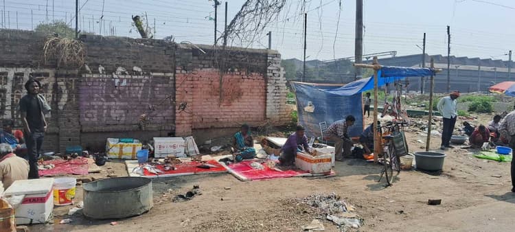 भीड़ वाले इलाके में होती है मांस-मछली की बिक्री