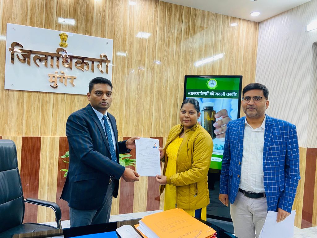 Munger news : तीन विकास मित्रों को डीएम दिया चयन पत्र