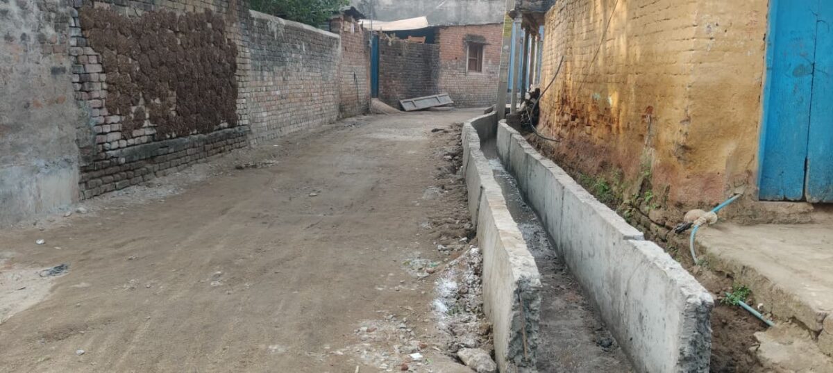 सड़क से ऊंचा बनाया जा रहा नाला, ग्रामीणों ने संवेदक पर लगाया लापरवाही का आरोप