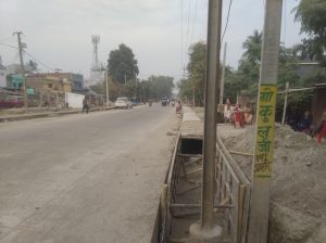 सड़क किनारे से विद्युत पोल को नहीं हटाया गया और सड़क सह नाला का निर्माण कर रहे संवेदक विद्युत पोल के अगल-बगल से नाला का निर्माण कर रहे हैं.