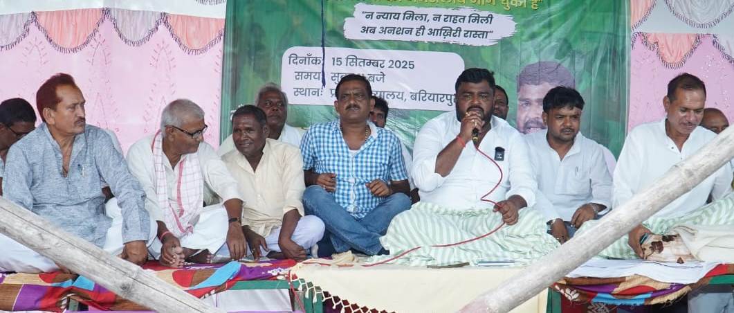बरियारपुर प्रखंड अंचल कार्यालय के समीप मंदिर के चबूतरा पर दूसरे दिन मंगलवार को भी राजद नेता सह मुंगेर विधानसभा के पूर्व प्रत्याशी अविनाश कुमार विद्यार्थी उर्फ मुकेश यादव आमरण अनशन पर बैठे हुए हैं. अनशन स्थल पर उनका समर्थन करने के लिए दर्जनों बाढ़ पीड़ित परिवार के महिला-पुरुष अनशन स्थल पर बने रहे. मुकेश यादव ने कहा कि बाढ़ मुआवजा वितरण में घोर अनियमितता बरती जा रही है. विभाग के भ्रष्टाचार का यह आलम है कि किसी घर में तीन-तीन लोगों को मुआवजा, तो किसी घर में एक भी व्यक्ति को मुआवजा की राशि नहीं पहुंची है. जब तक पीड़ित परिवार के खाते में मुआवजा राशि नहीं पहुंचती है, तब तक हमारा यह अनशन जारी रहेंगा. मौके पर राजद के पूर्व जिला अध्यक्ष देवकी नंदन बिंद, राजा राम गुप्ता, राजद के वरीय नेता नरेश सिंह यादव, अर्जुन मंडल, प्रो विनय कुमार सुमन, गजेंद्र कुमार हिमांशु सहित अन्य मौजूद थे.————————————–