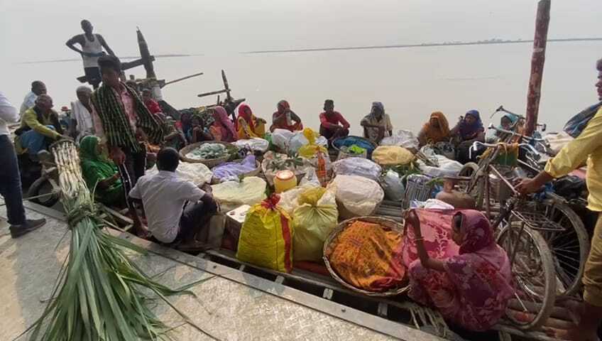 गंगा पार से छठ पूजन सामग्री खरीदने नाव से आये लोग