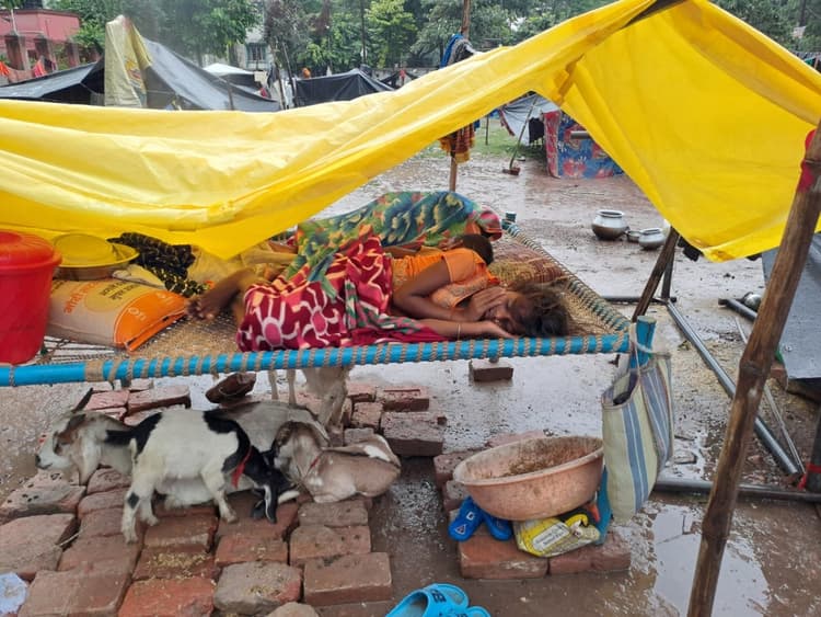जाफरनगर पंचायत से पहुंचीं लाखों देवी व पवित्री देवी ने कहा कि एक तो बाढ़ के कारण पूरे गांव के लोग जिंदगी जीने की जद्दोजहद कर रहे हैं. ऊपर से इस बारिश ने जीवन दुरूह कर दिया है. बारिश नहीं हो रही थी, तो हमलोग खुले में भी समय गुजार ले रहे थे, लेकिन बुधवार की रात से लगातार हो रही बारिश के कारण पॉलीथिन के तंबू में एक साथ पूरा परिवार बैठ कर रात गुजार रहा है. बकरियों को भी बारिश से बचाने के लिए अपने साथ ही तंबू में रखना पड़ रहा है. न जाने भगवान किस जन्म का बदला हमलोगों से ले रहे हैं. अगर बारिश नहीं रुकी, तो जीना और मुश्किल हो जायेगा. यही हाल बरियारपुर, रतनपुर सहित अन्य क्षेत्रों में रेलवे पटरी के किनारे और एनएच-80, एनएच-333 किनारे तंबू गाड़ कर रह रहे बाढ़ पीड़ितों की भी है.