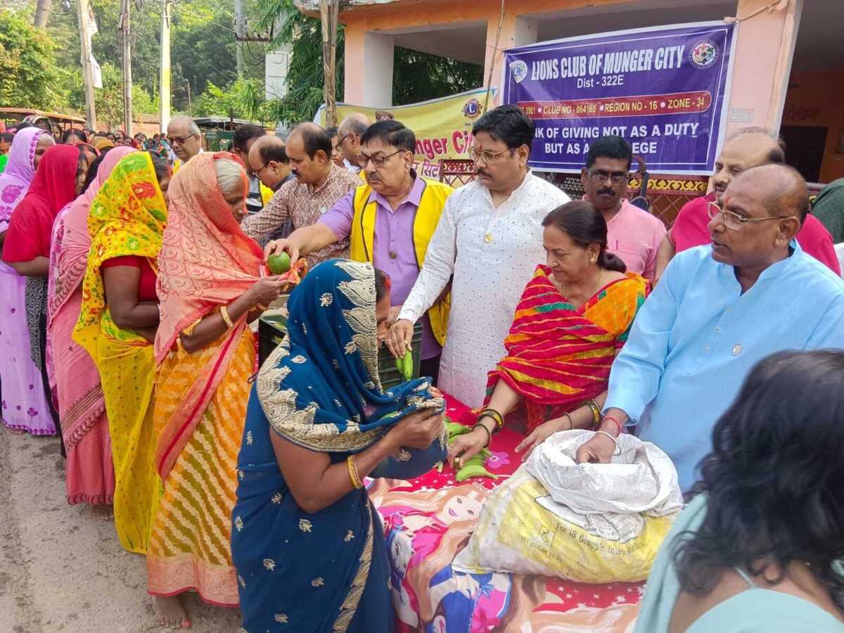 आस्था के महापर्व छठ पर लायंस क्लब मुंगेर सिटी द्वारा शनिवार को कष्टहरणी घाट के समीप शिविर लगाकर व्रतियों के बीच फल व पूजन सामग्री का वितरण किया गया.