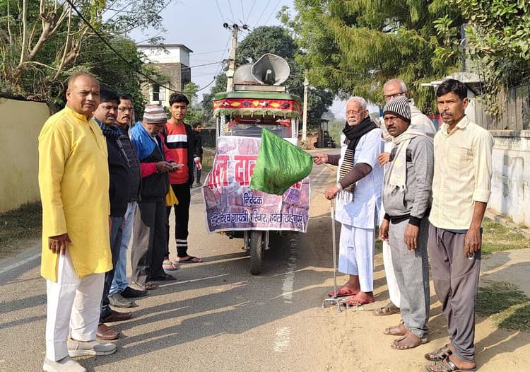 खड़गपुर अखिल विश्व गायत्री परिवार हवेली खड़गपुर शाखा द्वारा रविवार से वस्त्र दान सप्ताह का शुभारंभ किया गया. जहां सदस्य प्रो. रामचरित्र प्रसाद सिंह ने हरी झंडी दिखाकर वस्त्र दान रथ को रवाना किया. जो पुरानी चौक, मानिक चौक, मुख्य बाजार, मारवाड़ी टोला, कंटिया बाजार, पश्चिम अजीमगंज आदि क्षेत्रों का भ्रमण कर लोगों से पुराने कपड़े इकट्ठा किया. सदस्य ने कहा कि गायत्री परिवार रचनात्मक कार्य के तहत हर वर्ष शहर में घर-घर जाकर पुराने कपड़े दानस्वरूप लेकर असहाय, निर्धन एवं जरूरतमंदो के बीच वस्त्र दान करते हैं. क्षेत्र में सदस्यों की ओर से नया कंबल एवं वस्त्र दान जरूरतमंदों के बीच बांटा जाता है. संजीव कुमार ने कहा कि 10 वर्षों से लगातार 12 जनवरी को स्वामी विवेकानंद जयंती के उपलक्ष पर गायत्री शक्तिपीठ में असहाय, निर्धनों के बीच मेगा वस्त्र दान समारोह का आयोजन किया जाता है. साथ ही 25 जनवरी को गायत्री शक्तिपीठ में निशुल्क मोतियाबिंद जांच शिविर का आयोजन होगा. मौके पर बिंदाचरण सिंह, सुधीर चंद्र साहा, सुनील साह, ललन कुमार, अनुपम कुमार आदि मौजूद थे.