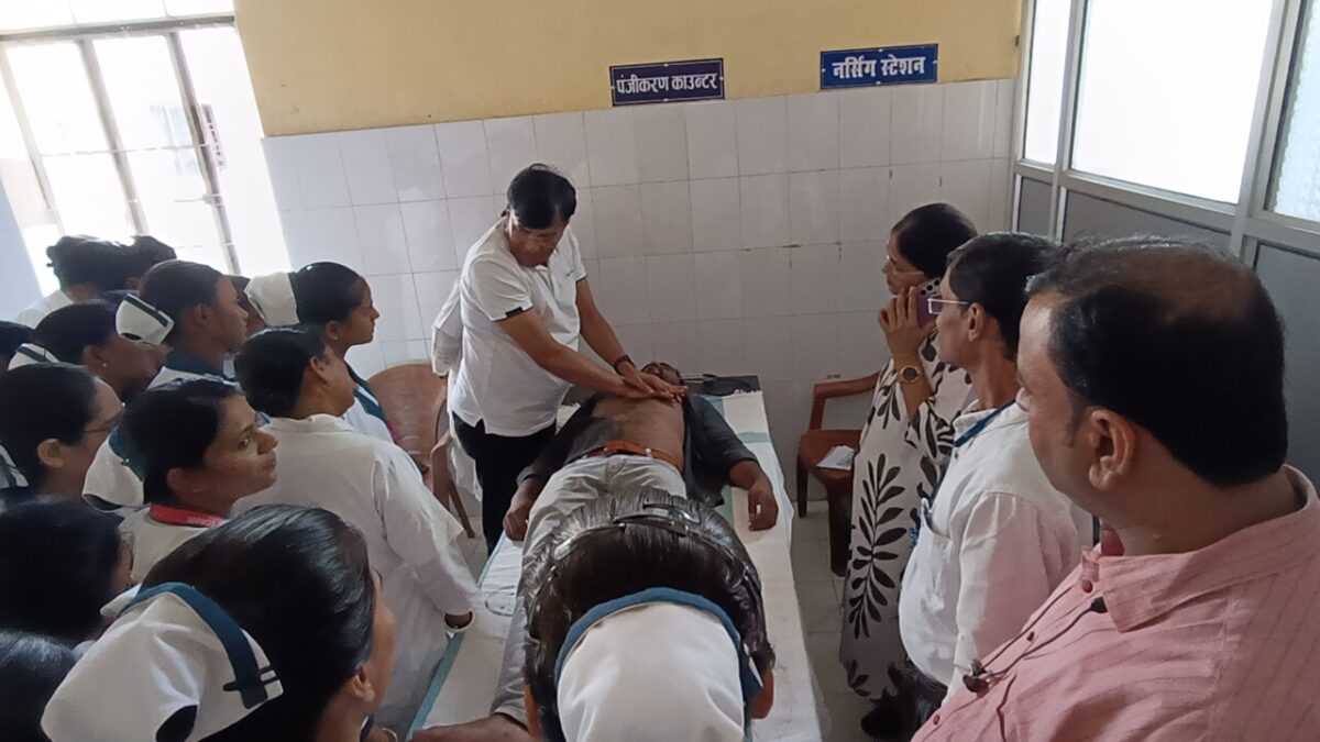 हृदयाघात से पीड़ित मरीजों को सीपीआर देने की विधि से अवगत हुए स्वास्थ्यकर्मी