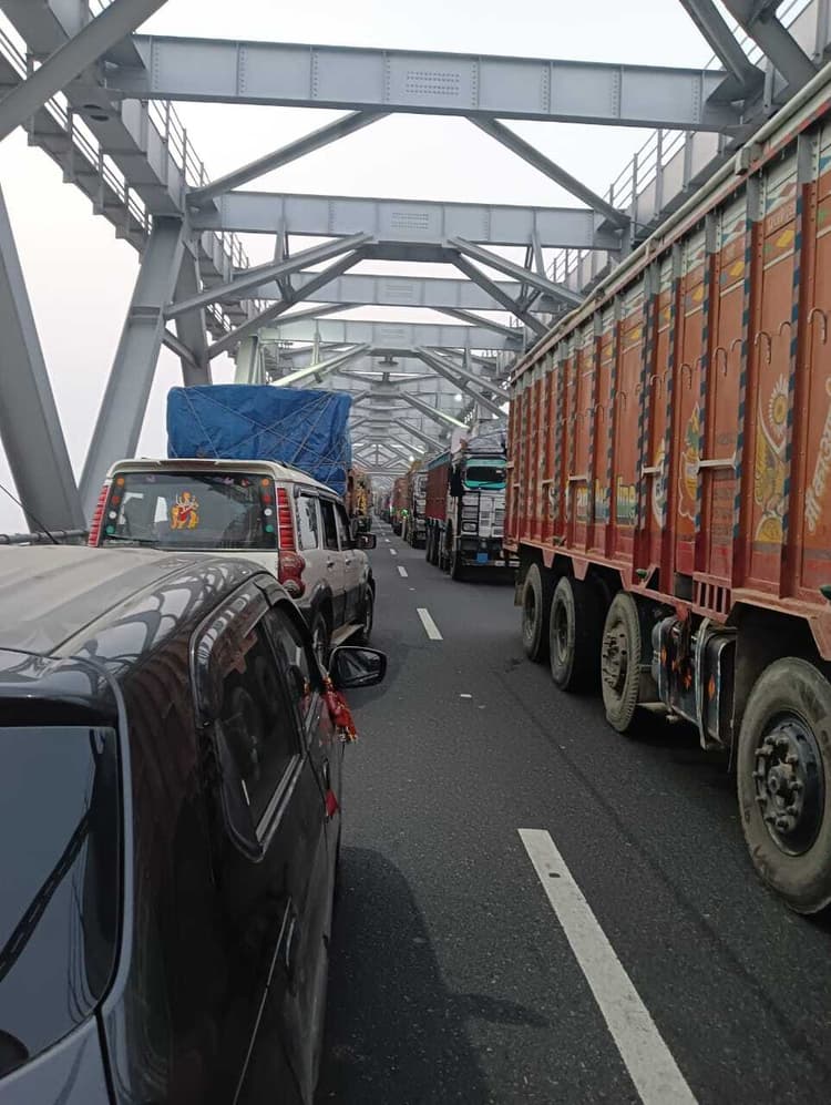 – पुल के दोनों ओर एनएच-333बी और एनएच-80 व 31 तक लग गयी वाहनों की लंबी कतार