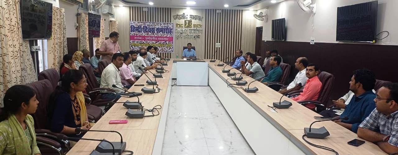 मुंगेर. प्रमंडलीय आयुक्त कार्यालय में हिंदी दिवस के पूर्व संध्या पर शनिवार को विचार गोष्ठी का आयोजन किया गया. जिसकी अध्यक्षता आयुक्त प्रमंडल मुंगेर अवनीश कुमार सिंह ने की. इस दौरान लोगों ने हिंदी भाषा के बारे में अपने-अपने विचार व्यक्त किये. आयुक्त ने बताया कि हिंदी अपने वर्तमान परिदृश्य में अभिव्यक्ति का एक सशक्त माध्यम है. आज के वर्तमान युग में नई तकनीकी के उपयोग से भाषाओं का अंतर लगभग समाप्त हो गया है. हम सभी को अपनी हिन्दी भाषा का प्रयोग सामान्य बोलचाल, व्यवहार एवं कार्य शैली में सदैव करते रहना चाहिए. हम सब का कर्तव्य है की हमें इस समृद्धशाली भाषा का अधिक से अधिक प्रयोग करें और दूसरों को इसके प्रयोग के लिए प्रोत्साहित करें. जिससे हिंदी भाषा के महत्व को बढ़ाया जा सके. हिंदी भाषा के विकास के लिए हिंदी भाषा के साहित्य से नई पीढ़ी को अवगत कराना होगा. जिससे हिंदी भाषा के विकास, इसके महत्व के बारे में नई पीढ़ी को जानकारी प्राप्त हो और नई पीढ़ी हिंदी भाषा के साहित्य में अपनी रुचि बढ़ा सके. इस दौरान उपस्थित अन्य वक्ताओं ने भी अपने विचार व्यक्त करते हुए हिंदी भाषा के महत्व को बताया. मौके पर आयुक्त के सचिव, आरडी एंड डीजे कॉलेज के प्रोफेसर, सभी प्रशाखा पदाधिकारी/सहायक प्रशाखा पदाधिकारी एवं कर्मी मौजूद थे.