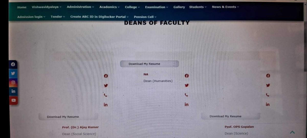 एमयू में वर्तमान में लगभग सभी संकायों के डीन बदल चुके हैं. जिसमें वर्तमान में सोशल साइंस के डीन प्रो. देवराज सुमन, ह्यूमेनिटी के डीन प्रो भवेशचंद्र पांडेय, साइंस के डीन प्रो विनोद कुमार हैं, लेकिन ऑफिसियल वेबसाइट के अनुसार, एमयू के साइंस के डीन प्रो ओपीएस गोपालन, सोशल साइंस के डीन प्रो अजय कुमार तथा ह्यूमेनिटी के डीन का पद ही खाली है. अब ऐसे में एमयू में पढ़ने वाले विद्यार्थियों में अपने संकाय के डीन को लेकर ही असमंजस की स्थिति बनी हुई है.