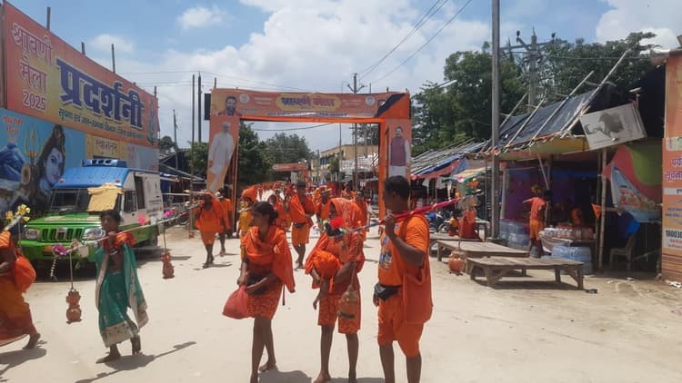 संग्रामपुर. विश्व प्रसिद्ध श्रावणी मेला अपने समापन की ओर बढ़ रहा है. लाखों श्रद्धालु उत्तरवाहिनी गंगा से जल भरकर बोल बम के जयकारे के बीच बाबा बैद्यनाथ धाम की ओर अग्रसर हैं. बीते दो दिनों से तेज धूप और उमस भरी गर्मी के बावजूद कांवरियों के आस्था और उत्साह में कोई कमी नहीं आयी. कांवरियों की सुविधा को ध्यान में रखते हुए प्रशासनिक स्तर पर कच्ची कांवरिया पथ में जगह-जगह शौचालय, पेयजल, अस्थायी स्वास्थ्य शिविर तथा सुरक्षा के लिए पुलिस पिकेट लगाए गए हैं. इससे श्रद्धालु खुद को सुरक्षित और सहज महसूस कर रहे हैं.