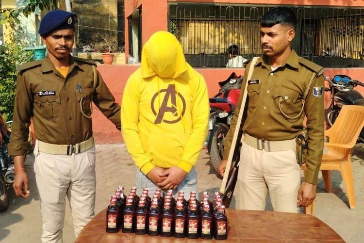 मुंगेर. शहर के गांधी चौक पर बर्तन दुकान से शराब का धंध संचालित करते दुकानदार विक्रम कुमार डोलू को कोतवाली थाना पुलिस ने गिरफ्तार कर लिया. दुकानदार शहर के गुलजार पोखर का रहने वाला है. दुकान से पुलिस ने 45 बोतल में कुल 8 लीटर विदेशी शराब बरामद की. कोतवाली थानाध्यक्ष राजीव तिवारी ने बताया कि गुरुवार को सूचना मिली कि गांधी चौक पर एक बर्तन की दुकान से शराब का धंधा होता है. पुलिस ने बर्तन की दुकान में छापेमारी की. इस दौरान दुकान से मैकडबल कंपनी की 375 एमएल की कुल 45 बोतल शराब बरामद हुई. पुलिस ने तत्काल दुकान का संचालन कर रहे गुलजार पोखर निवासी विक्रम कुमार उर्फ डोलू को गिरफ्तार कर लिया, जो गुलजार पोखर का रहने वाला है. हालांकि गिरफ्तार दुकानदार ने बताया कि उसकी दुकान में किसी ने शराब भरा बैग फेंक दिया था. शराब उसका नहीं है. थानाध्यक्ष ने बताया कि इस मामले में थाने में संशोधित उत्पाद अधिनियम के तहत मामला दर्ज कर गिरफ्तार दुकानदार को जेल भेज दिया गया.