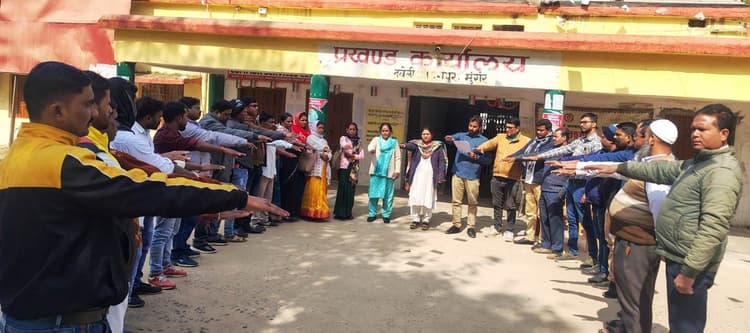 हवेली खड़गपुर : राष्ट्रपिता महात्मा गांधी की पुण्यतिथि के र शुक्रवार को प्रखंड कार्यालय हवेली खड़गपुर में कुष्ठ रोग निर्मूलन दिवस मनाया गया. इस अवसर पर प्रखंड कार्यालय परिसर में आयोजित कार्यक्रम के दौरान सभी पदाधिकारियों एवं कर्मचारियों ने कुष्ठ रोग के उन्मूलन को लेकर सामूहिक शपथ ली. कार्यक्रम की अध्यक्षता बीडीओ प्रियंका कुमारी ने की. उन्होंने कहा कि कुष्ठ रोग एक संक्रामक लेकिन पूर्णतः इलाज योग्य रोग है. समय पर पहचान और नियमित उपचार से इस रोग को पूरी तरह समाप्त किया जा सकता है. उन्होंने समाज में फैली भ्रांतियों को दूर करने और कुष्ठ रोग से पीड़ित व्यक्तियों के प्रति सहानुभूतिपूर्ण व्यवहार अपनाने की सलाह दी. इस मौके पर मौजूद कर्मियों ने यह संकल्प लिया कि वे कुष्ठ रोग के प्रति जागरूकता फैलाने, पीड़ितों को उपचार के लिए प्रेरित करने तथा भेदभाव रहित समाज के निर्माण में सक्रिय भूमिका निभाएंगे. ——————————————— जन सुनवाई में 10 मामलों का किया गया निपटारा हवेली खड़गपुर : हवेली खड़गपुर प्रखंड कार्यालय परिसर में शुक्रवार को सरकार के निर्देश पर सात निश्चय 3 के तहत जन सुनवाई कार्यक्रम का आयोजन किया गया. जिसमें ग्रामीणों ने पेयजल, नाली-गली, आवास, सड़क, स्वच्छता समेत पंचायत और गांव से जुड़ी कई मूलभूत समस्याओं से पदाधिकारी को अवगत कराया. बीडीओ प्रियंका कुमारी ने एक-एक कर फरियादियों की समस्याएं सुनीं और संबंधित मामलों में त्वरित संज्ञान लिया. वहीं जनसुनवाई के दौरान 10 मामलों का ऑन द स्पॉट निष्पादन किया गया. उन्होंने मौके पर ही संबंधित कर्मियों को आवश्यक दिशा-निर्देश देते हुए कई समस्याओं के शीघ्र समाधान का आश्वासन दिया. बीडीओ ने कहा कि सात निश्चय योजना का उद्देश्य आम जनता को बुनियादी सुविधाएं उपलब्ध कराना है और इसमें किसी भी प्रकार की लापरवाही बर्दाश्त नहीं की जाएगी. उन्होंने ग्रामीणों से अपील की कि वे योजनाओं का लाभ लेने में आ रही कठिनाइयों की जानकारी सीधे प्रखंड कार्यालय को दें, जिससे समय पर कार्रवाई किया जा सके. इस मौके पर गौरव मिश्रा ,पवन कुमार सहित प्रखंड कार्यालय के कर्मी मौजूद थे.