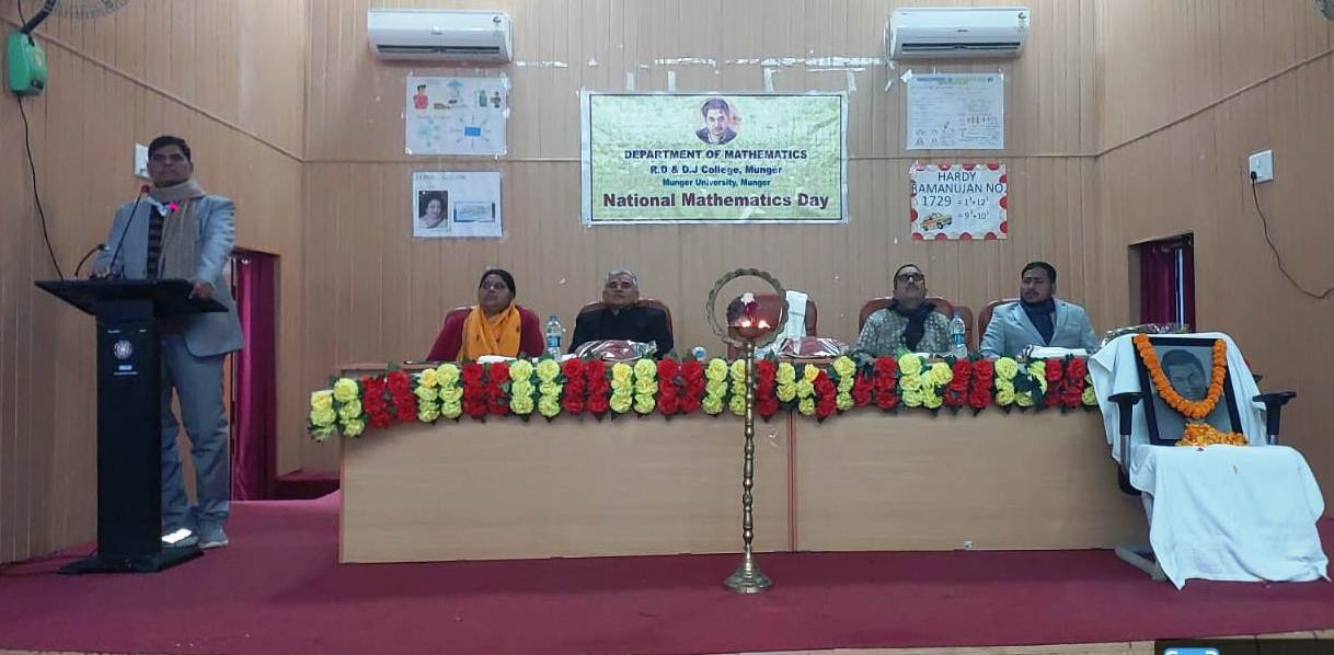 महान गणितज्ञ श्रीनिवास रामानुजन की जयंती के अवसर पर सेमीनार का आयोजन मुंगेर भारतीय बौद्धिक मनीषी रामानुजन के जन्म दिवस पर भारत सरकार द्वारा घोषित राष्ट्रीय गणित दिवस को लेकर सोमवार को आरडी एंड डीजे कॉलेज के ऑडिटोरियम में गणित एवं संस्कृत विभाग द्वारा गणित दिवस का आयोजन किया गया. जहां उपस्थित विद्यार्थियों को गणित एवं खगोलीय ज्ञान परंपरा से अवगत कराया गया. कार्यक्रम की अध्यक्षता कॉलेज के प्राचार्य प्रो. बिजेेंद्र कुमार ने किया. मुख्य अतिथि के रूप में एमयू के गणित पीजी विभागाध्यक्ष डॉ अमर कुमार तथा मुख्य वक्ता के रूप में वैदिक गणित के बिहार-झारखण्ड क्षेत्र के कन्वीनर रामचन्द्र आर्य थे. कार्यक्रम का आरंभ करते हुए संस्कृत विभागाध्यक्ष डॉ विश्वजीत विद्यालंकार ने संस्कृत एवं गणित के पारस्परिक संबंधों को साक्ष्य सहित प्रस्तुत करते हुए वैदिक सूत्र ग्रन्थों से लेकर आर्यभट्ट, महावीराचार्य, वरामिहिर आदि समस्त गणितज्ञ एवं खगोलीय ज्ञान परंपरा से सबको परिचित कराया. गणित विभागाध्यक्षा डॉ निलय ने रामानुजन जयंती एवं राष्ट्रीय गणित दिवस के महत्त्व को सप्रमाण प्रस्तुत करते हुए सम्पूर्ण कार्यक्रम का संचालन किया. इस दौरान गणित विभाग के 15 छात्रों/छात्राओं शुभम, अंकित, हिमांशु, यशवीन, करिश्मा, श्वेतांगी, अभिनव आदि ने गणित से संबंधित विषयों को पीपीटी के माध्यम से प्रस्तुति किया. मुख्य अतिथि ने श्रीरामानुजन की प्रतिभा को सबके समक्ष प्रस्तुत किया. साथ ही कहा कि गणित एवं खगोलीय ज्ञान परंपरा शिक्षा के लिये सबसे अधिक महत्वपूर्ण हैं. मुख्य वक्ता ने पीपीटी के माध्यम से वैदिक गणित की बारीकियों से छात्र-छात्राओं को परिचित कराया. स्नातकोत्तर भौतिक विज्ञान विभागाध्यक्ष डॉ गोपाल प्रसाद चौधरी ने रामानुजन जयंती समारोह की सार्थकता को बताते हुए कहा कि हमें अपने विद्यार्थियों की प्रतिभा को पहचान कर उन्हें सही मार्गदर्शन देना होगा. अध्यक्षीय भाषण देते हुए कॉलेज के प्राचार्य ने गणित दिवस के आयोजन के उद्देश्यों पर विस्तार से अपनी बात रखी. मौके पर एनएसएस कॉर्डिनेटर मुनीन्द्र कुमार सिंह, डॉ बालकिशन, डॉ नीतेश नारायण, डॉ रुचि श्रीवास्तव, डॉ ज्योति, डॉ स्वीटी, डॉ कैलाश एवं गणित विभाग व संस्कृत विभाग के विद्यार्थी मौजूद थे.