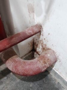 पान व गुटखा की पीक से प्रवेश द्वार, सीढीयों के कोने, बाथरूम का कोना पीक से रंगी पड़ी है.