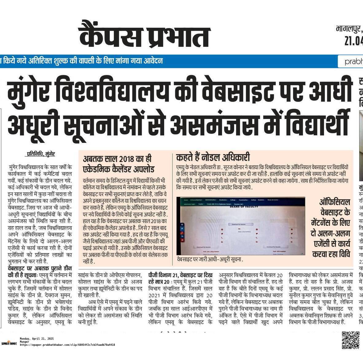 एमयू की बदहाल ऑफिशियल वेबसाइट को लेकर प्रभात खबर ने प्रकाशित की थी खबरप्रतिनिधि, मुंगेर.