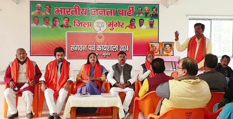 मुंगेर. जिला भाजपा कार्यालय में मंगलवार को जिला इकाई की कार्यशाला का आयोजन किया गया. मौके पर मुख्य अतिथि के रूप में जिला चुनाव अधिकारी पिंकी कुशवाहा, प्रदेश मीडिया प्रभारी मो दानिश इकबाल, विधायक प्रणव कुमार यादव एवं विशिष्ट अतिथि जिला प्रभारी विपिन सिंह, प्रदेश कार्य समिति सदस्य संजीव मंडल उपस्थित थे. कार्यशाला में सर्वप्रथम डॉ श्यामा प्रसाद मुखर्जी एवं पंडित दीनदयाल उपाध्याय के चित्र पर माल्यार्पण व पुष्पांजलि अर्पित की गयी. इसके बाद वंदे मातरम् गायन के साथ कार्यक्रम का शुभारंभ किया गया. नेताओं ने कहा कि पार्टी ने संगठन के चुनाव को पर्व का नाम दिया है. उसके महत्व को समझने की आवश्यकता है. पार्टी आपकी क्षमता के अनुसार आपको दायित्व सौंपती है. हमलोगों को आगामी 2025 विधानसभा के चुनाव में लगना है. क्योंकि चुनाव का शंखनाद हो चुका है.अगर चुनाव में सफल होना है तो पार्टी को बूथ स्तर पर सशक्त करना होगा. नेताओं ने कहा कि आज भाजपा विश्व की सबसे बड़ी पार्टी बन चुकी है. इसलिए भी हमलोगों का दायित्व बनता है कि बूथ स्तर पर स्थानीय समिति गठित कर संगठन पर्व को सफल बनाएं. कार्यशाला में कार्यकर्ताओं को केंद्र सरकार एवं बिहार सरकार की उपलब्धियों को बताते हुए कहा गया कि इन उपलब्धियों को लेकर जनता के बीच जाएं, ताकि आगामी विधानसभा चुनाव में हमलोग विपक्ष को करारा जबाब दें सकें. इसकी अध्यक्षता जिलाध्यक्ष अरुण पोद्दार ने की. मौके पर राजेश जैन, वीणा देवी, शंभुशरण राय, अविनाश सिंह नन्हे, रविभूषण गुप्ता उर्फ भोला, आशुतोष पासवान सहित अन्य मौजूद थे.