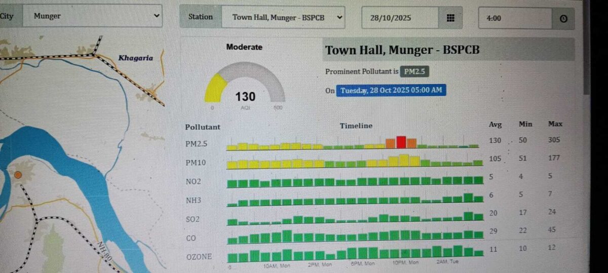 मुंगेर. शहर में तेजी से बढ़ रहे वाहनों की संख्या अब मुंगेर की हवा को जहरीला बना रही है. वायु प्रदूषण का स्तर लगातार बढ़ने से लोगों का स्वास्थ्य खतरे में है. विशेषज्ञों के अनुसार, यह स्थिति अस्थमा, हृदय रोग और सांस से जुड़ी बीमारियों से पीड़ित लोगों के लिए बेहद खतरनाक होती जा रही है. नेशनल पॉल्यूशन कंट्रोल बोर्ड की वेबसाइट पर जारी आंकड़ों के मुताबिक, मुंगेर का एयर क्वालिटी इंडेक्स 133 दर्ज किया गया है. यह स्तर सामान्य लोगों के लिए तो हल्का माना जाता है, लेकिन बुजुर्गों, बच्चों और पहले से बीमार मरीजों के लिए यह गंभीर खतरा है. स्वास्थ्य विशेषज्ञों का कहना है कि लगातार बढ़ता धूल-धुआं, पुराने वाहनों का उत्सर्जन और बिना जांच के चल रहे ऑटो व मोटरसाइकिल इस प्रदूषण के प्रमुख कारण हैं. शहर की सड़कों पर बढ़ता ट्रैफिक और निर्माण कार्यों की धूल ने स्थिति और खराब कर दी है. स्थानीय लोगों का कहना है कि प्रशासन को समय रहते प्रदूषण नियंत्रण के लिए ठोस कदम उठाने चाहिए, वरना आने वाले दिनों में मुंगेर की हवा सांस लेना मुश्किल बना देगी.खतरे के निशान के पास पहुंच रहा एयर क्वालिटी इंडेक्स