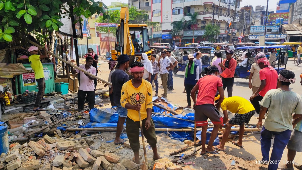 * लगभग डेढ़ दर्जन अस्थाई दुकान और गुमटी हटाए गए जमालपुर जमालपुर शहर के हृदय स्थल जुबली वेल चौक पर सरकारी जमीन पर अतिक्रमण करने वाले के विरुद्ध मंगलवार को नगर परिषद प्रशासन द्वारा अतिक्रमण हटाने की कार्रवाई की गई. इस दौरान चौक को अतिक्रमण मुक्त कर लिया गया. जानकारी के अनुसार 28 अप्रैल को ही नगर परिषद प्रबंधन द्वारा जुबली बेल चौक पर सरकारी जमीन पर कब्जा जमाने वाले दुकानदारों को 72 घंटे के अंदर जमीन खाली करने का नोटिस दिया गया था. इस सिलसिले में जुबली वेल के आसपास के दुकानदारों की दुकान पर नगर परिषद का नोटिस चिपकाए गया था. नोटिस देने के बावजूद दुकानदारों ने जगह खाली नहीं किया. इसके बाद कार्यपालक पदाधिकारी विजयशील गौतम के आवेदन पर जिला प्रशासन द्वारा मंगलवार को अतिक्रमण हटाओ अभियान चलाने की सहमति मिली. इस क्रम में मजिस्ट्रेट के रूप में नगर परिषद के सहायक अभियंता विवेक कुमार की प्रतिनियुक्ति की गई. इसके बाद जुबली वेल पर मंगलवार के अपराह्न को जमालपुर पुलिस के सहयोग से अतिक्रमण हटाने का कार्य आरंभ हुआ. जिसके कारण दुकानदारों में हड़कंप मच गया. जिस दुकानदार को मौका लगा वह अपना बॉक्स और अलमारी निकालना शुरू कर दिया. इस बीच जेसीबी मशीन और ट्रैक्टर भी लाया गया था. नगर परिषद कर्मियों ने वहां लगाए गए बांस के ढांचे को उखाड़ कर ट्रैक्टर पर लोड कर दिया. इतना ही नहीं दुकानदारों को तब इस बात का एहसास हुआ कि नगर परिषद प्रबंधन इस बार कड़ी कार्रवाई के लिए प्रतिबद्ध है, जब चौक की दक्षिण की तरफ बनाया गया टॉयलेट को भी जेसीबी से ध्वस्त कर दिया गया. दंडाधिकारी के रूप में उपस्थित सहायक अभियंता ने बताया कि लगभग डेढ़ दर्जन दुकान को वहां से हटाया गया. मौके पर नगर परिषद के जूनियर इंजीनियर आनंद प्रकाश, योजना सहायक प्रेम शंकर, जमालपुर थाना के सहायक अवर निरीक्षक रमेश कुमार मौजूद थे.