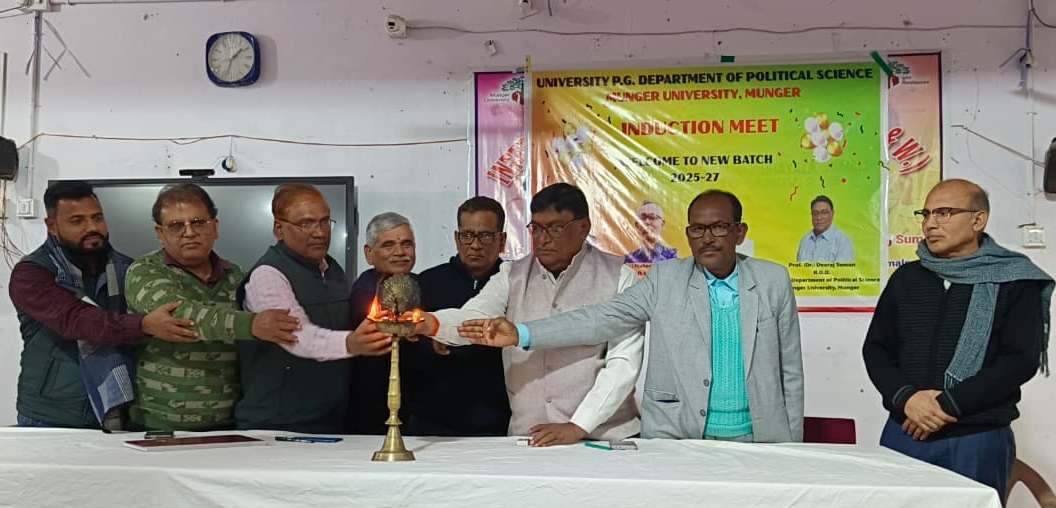 मुंगेर ————————– जेआरएस कॉलेज, जमालपुर में मंगलवार को राजनीति विज्ञान पीजी विभाग द्वारा सत्र 2025-27 पीजी सेमेस्टर-1 के विद्यार्थियों के लिये इंडक्शन मीट का आयोजन किया गया. जहां नये सत्र के विद्यार्थियों को कक्षा एवं शिक्षण कार्य की जानकारी दी गयी. अध्यक्षता राजनीति विज्ञान पीजी विभागाध्यक्ष प्रो देवराज सुमन ने की. जहां कुलानुशासक डॉ जयंत कुमार एवं महाविद्यालय निरीक्षक प्रो कलाल बखला भी थे. विभागाध्यक्ष ने नये छात्राओं को बताया कि विभाग में ज्यादा संख्या में शिक्षकों की व्यवस्था की जाएगी तथा विभाग के छात्रों के उत्कृष्ट प्रदशर्न प्रोत्साहन की व्यवस्था की जाएगी. उन्होंने बताया कि राजनीति विज्ञान की स्नातकोत्तर कक्षाएं बुधवार से ही महाविद्यालय की कक्षा हॉल-सी में ली जाएगी. स्नातकोत्तर विभाग में नियुक्त शिक्षक समयानुसार कक्षाएं संचालित करेंगे. इसके लिए सभी संबंधित प्राध्यापकों को सूचित कर दिया गया है. अंग्रेजी विभागाध्यक्ष सह मानवीय संकाय के डीन प्रो भवेशचंद्र पांडेय ने छात्र छात्रों को अध्ययन की विभिन्न बारीकियां को समझाया तथा शोध पार्क अध्ययन पर जोड़ दिया. उर्दू विभागध्यक्ष प्रो शहीद राजा जमाल ने कहा की राजनीतिक विज्ञान का क्षेत्र बहुत बड़ा है. समाज और राष्ट्र को छात्र-छात्राओं से बड़ी आशा है. गणित विभाग अध्यक्ष प्रो अमर कुमार ने अपने अनुभवों से छात्र-छात्राओं को रूबरू कराया तथा बताया कि पीजी की परीक्षाएं और अंक विभाजन पर ध्यान रखना आवश्यक है. सेमेस्टर सिस्टम में पाठ्यक्रम के अनुसार अध्ययन के अतिरिक्त आंतरिक परीक्षा और प्रोजेक्ट वर्क को गंभीरता से लेना है. इसके लिए कक्षाओं में नियमित उपस्थिति काफी कारगर साबित होगी. मौके पर केएमडी कॉलेज प्रवक्ता के सहायक प्राध्यापक ललन मंडल, दर्शनशास्त्र के सहायक अध्यापक डॉ राजेश कुमार सिंह, हिंदी विभाग के पूर्व विभाग अध्यक्ष डॉक्टर शिवकुमार मंडल, डॉ सुनील कुमार आदि मौजूद थे.
